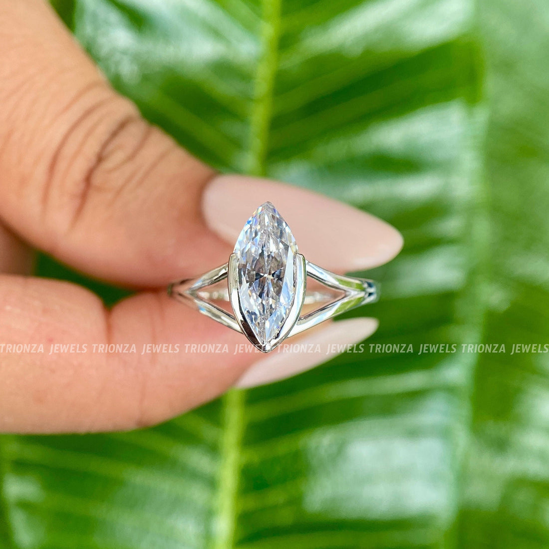 2 CT Marquise Moissanite Engagement Ring | 14K White Gold Bridal