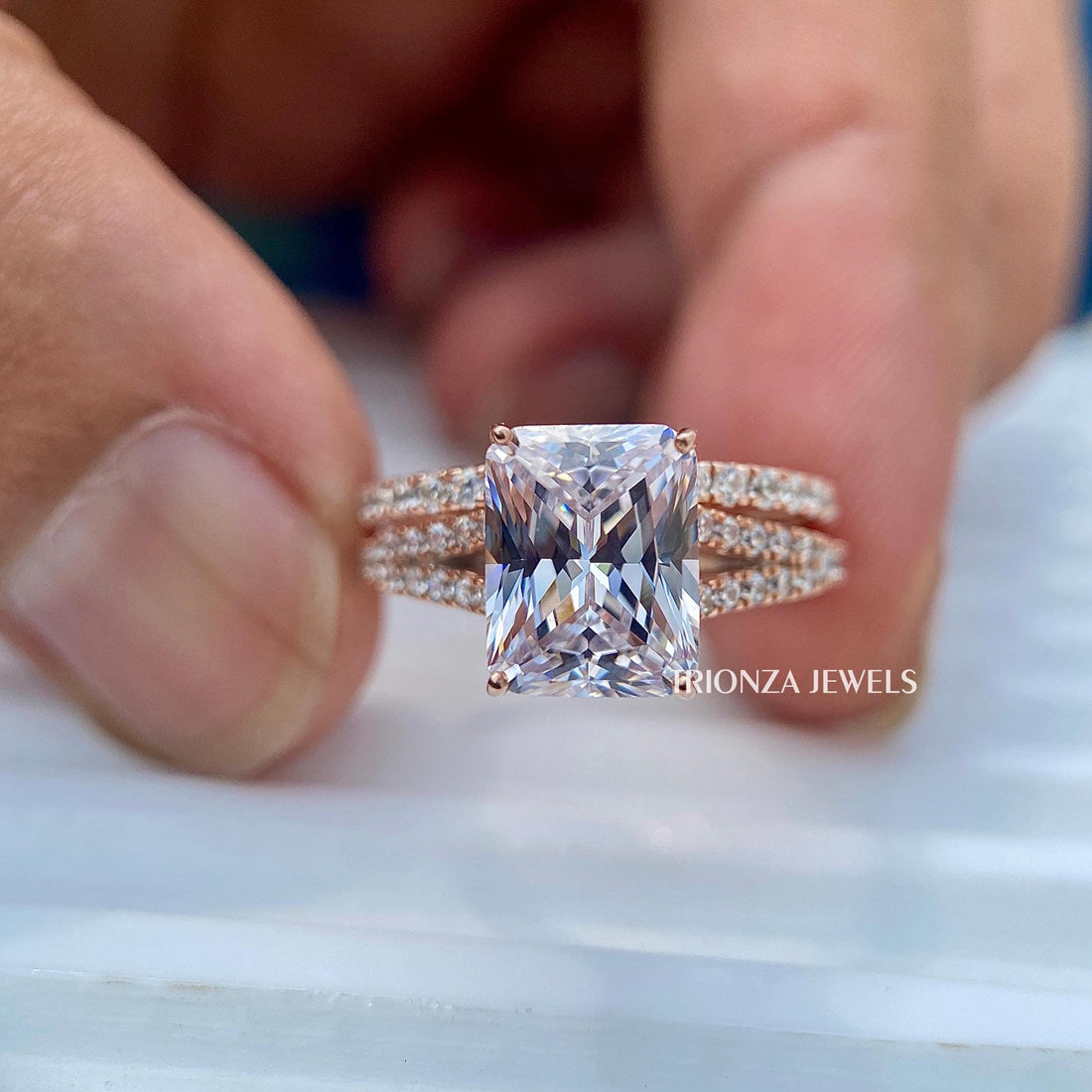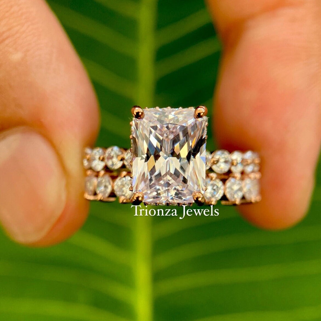 3 Ct Radiant Moissanite Engagement Ring Set | Rose Gold Bridal