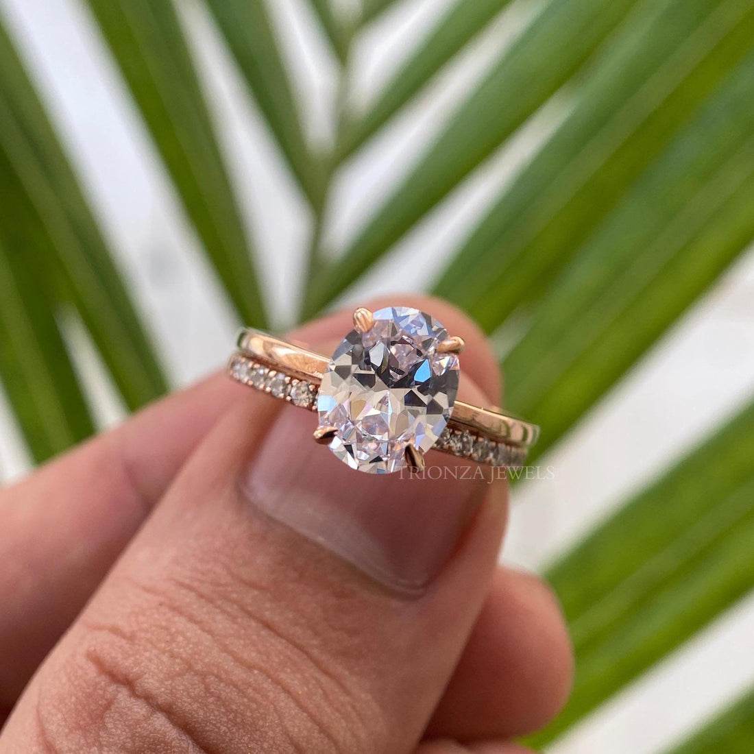 2.00 CT Oval Moissanite Bridal Set - 14K Rose Gold Wedding Ring