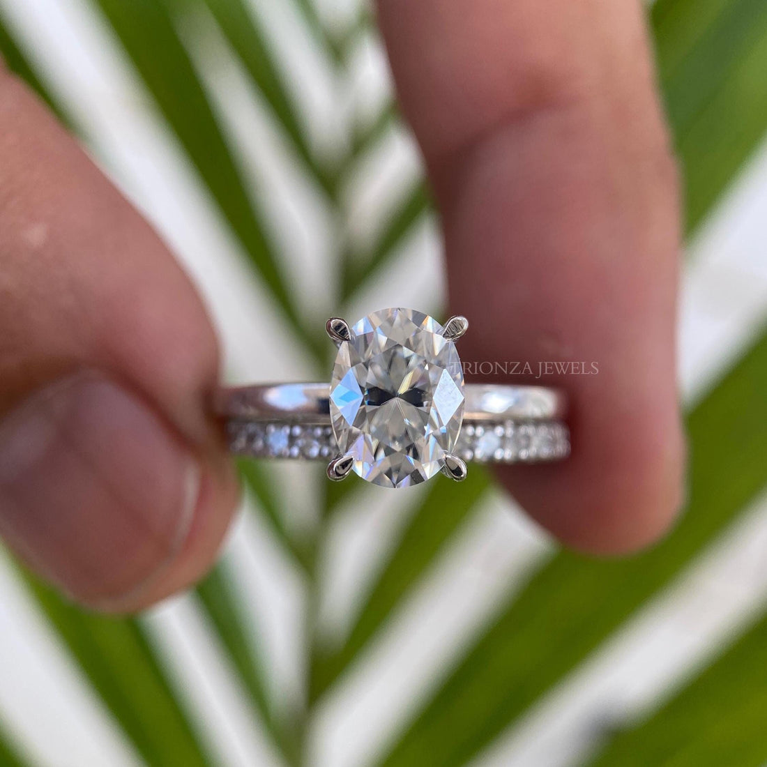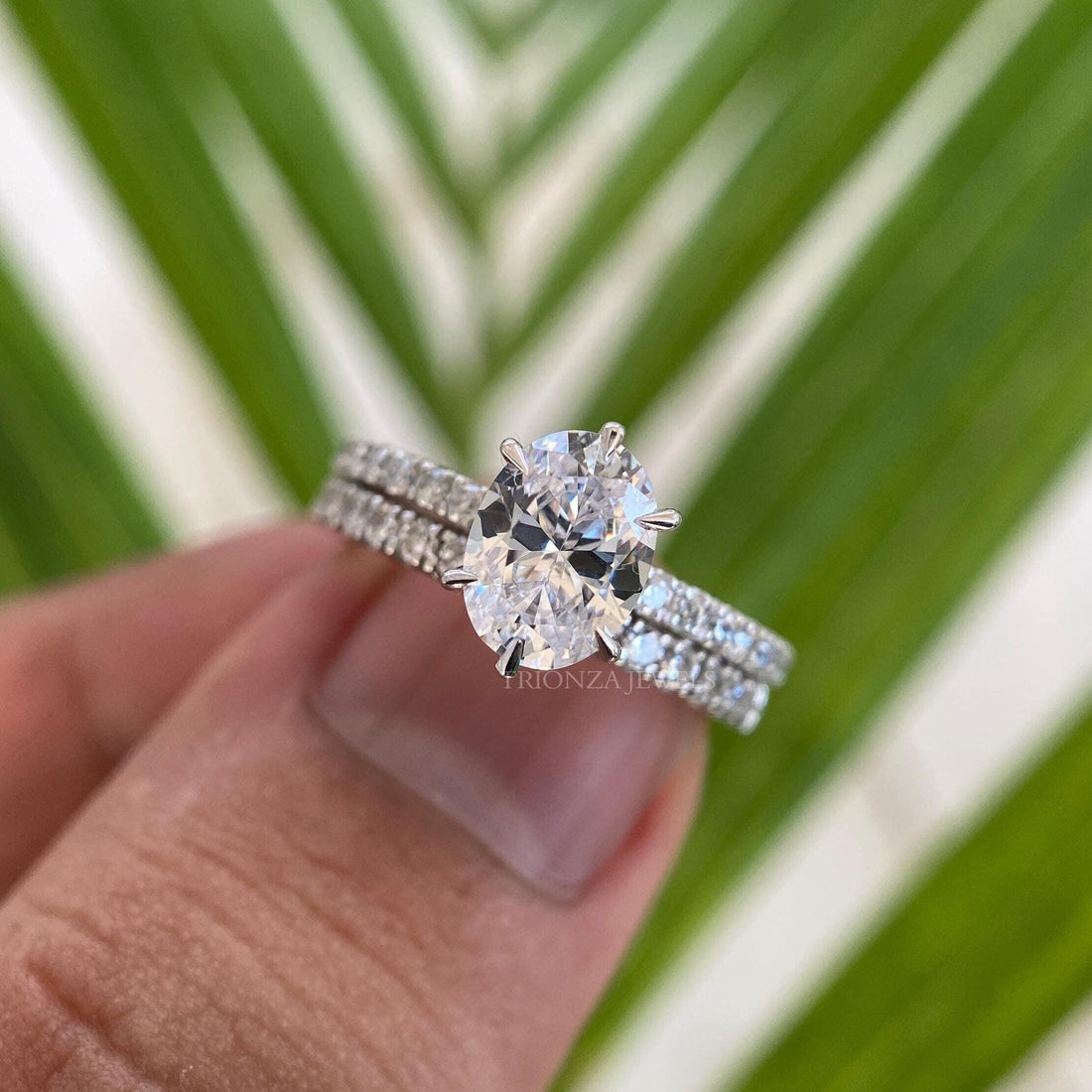 3 CT Oval Moissanite Engagement Bridal Set Ring - Wedding Band