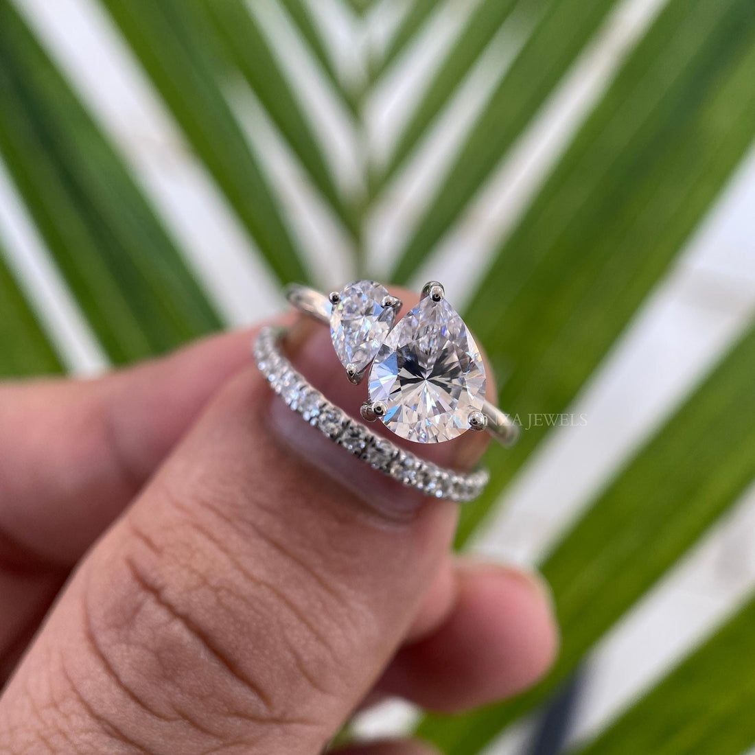 1.25 CT Pear Moissanite Toi Et Moi Two Stone Bridal Wedding Set