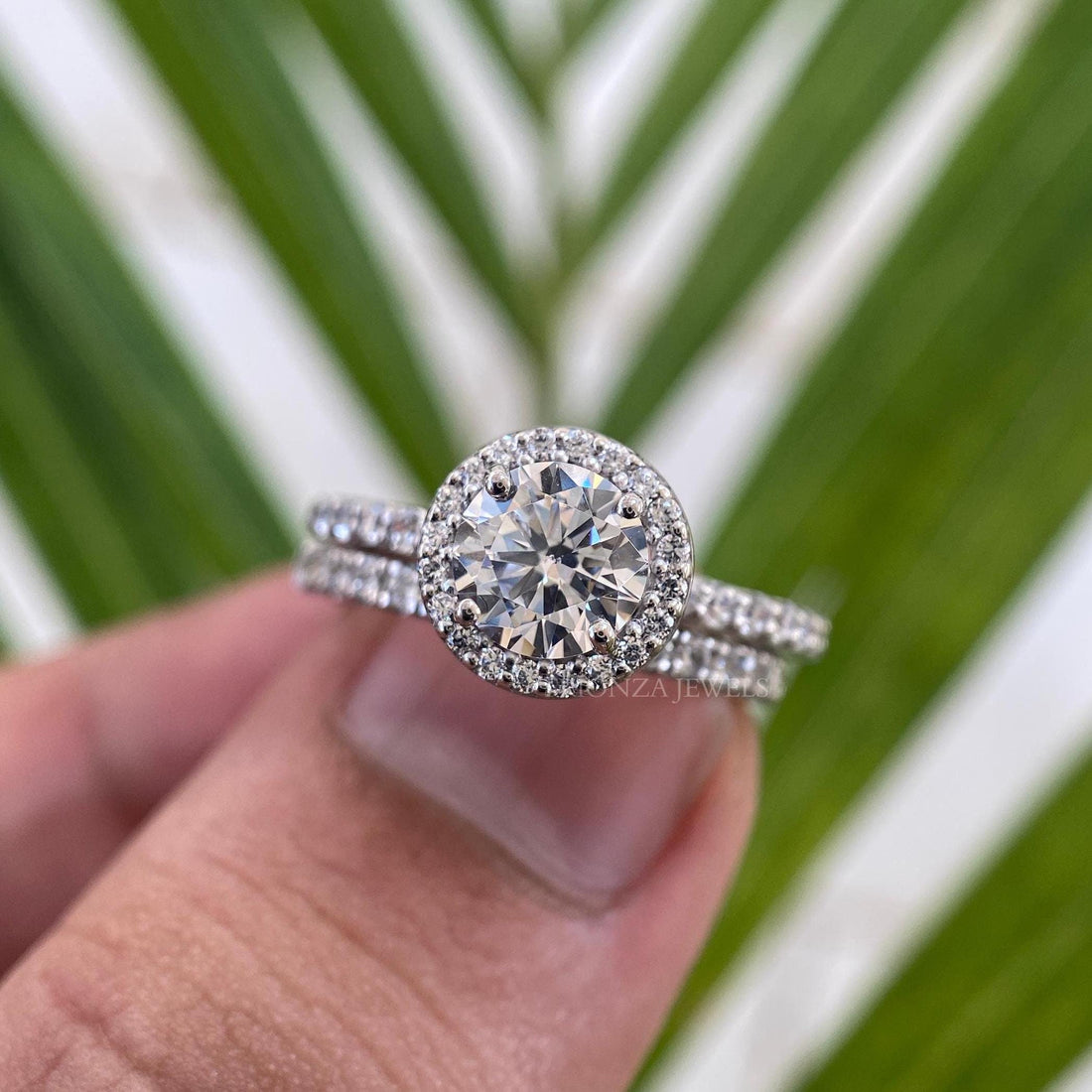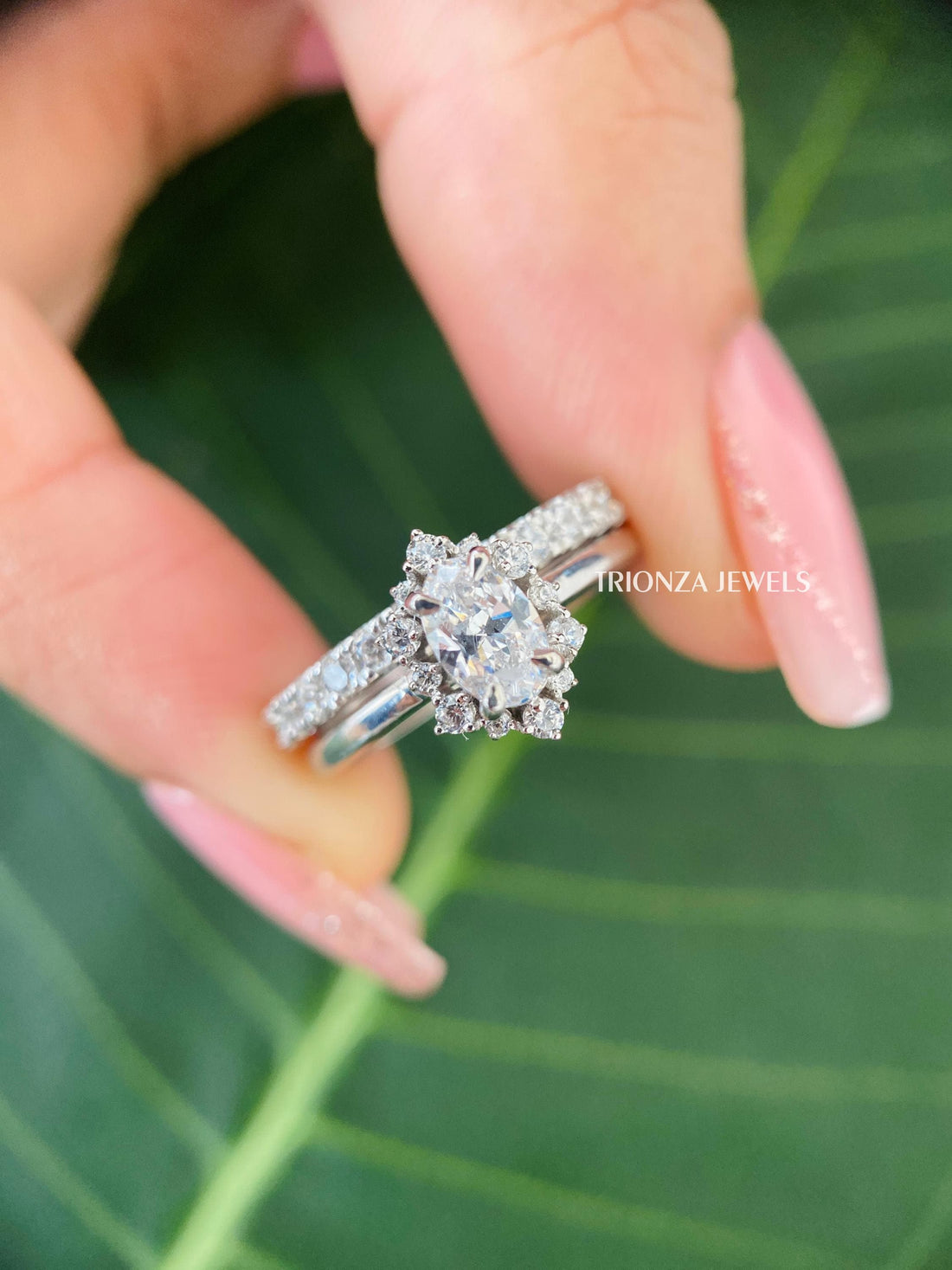 1 CT Oval Moissanite Halo Wedding Ring Set - Bridal & Eternity Band