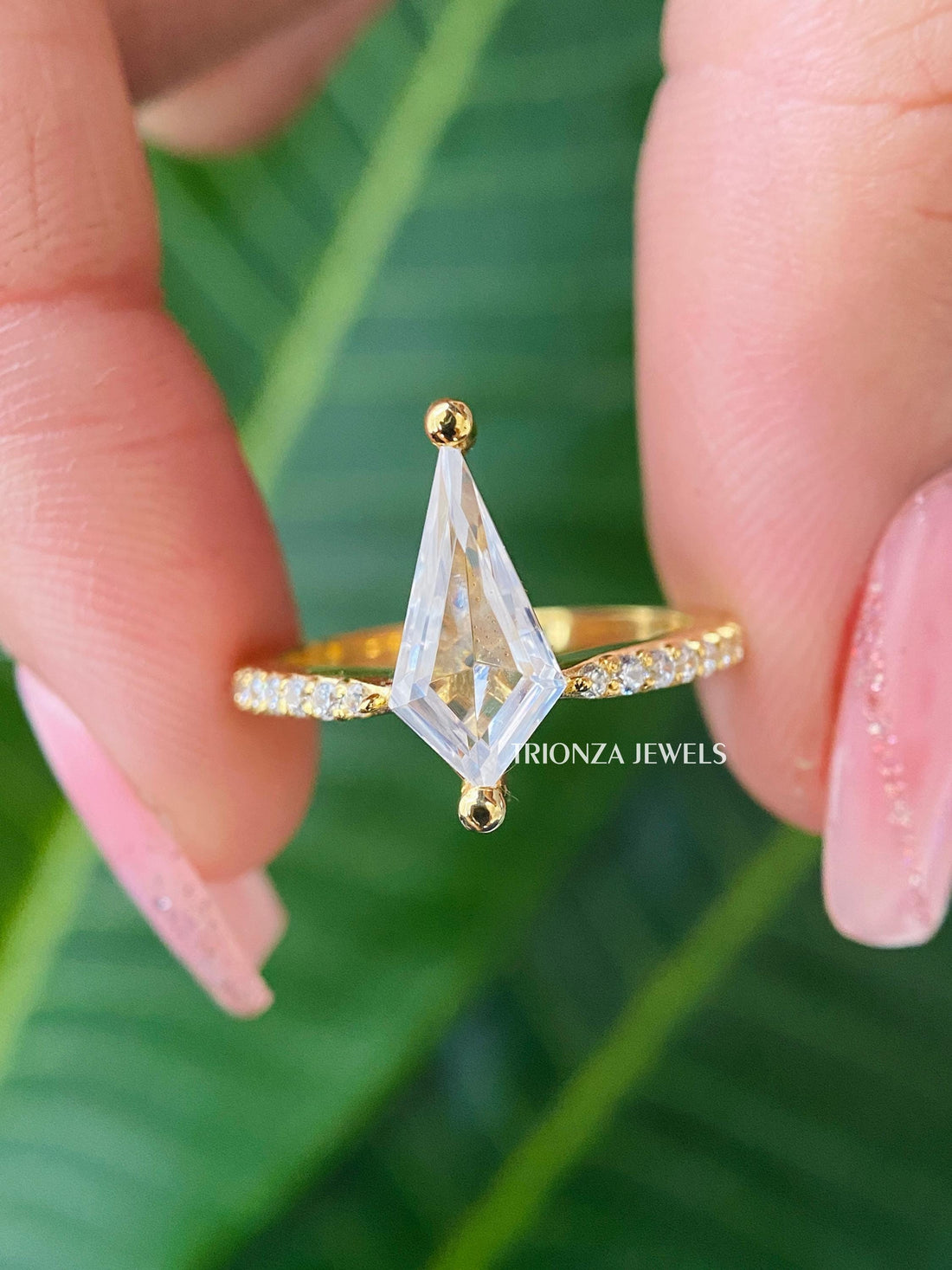 2CT Kite Cut Moissanite Bridal Set | 14K Gold Wedding & Promise Ring