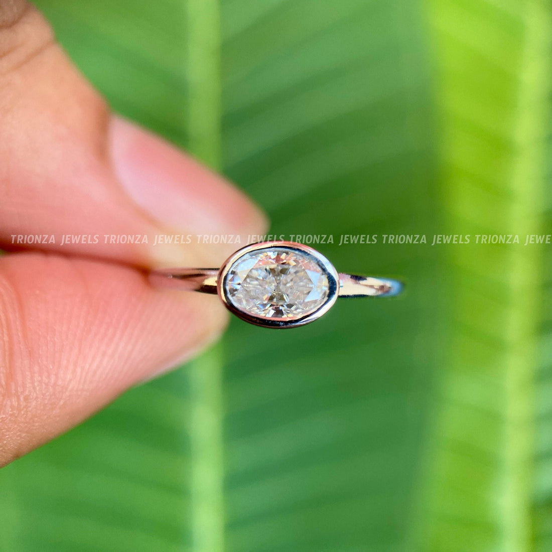 Celebrate your love with this stunning 14K Solid Gold East-West Oval Moissanite Engagement Ring, also...