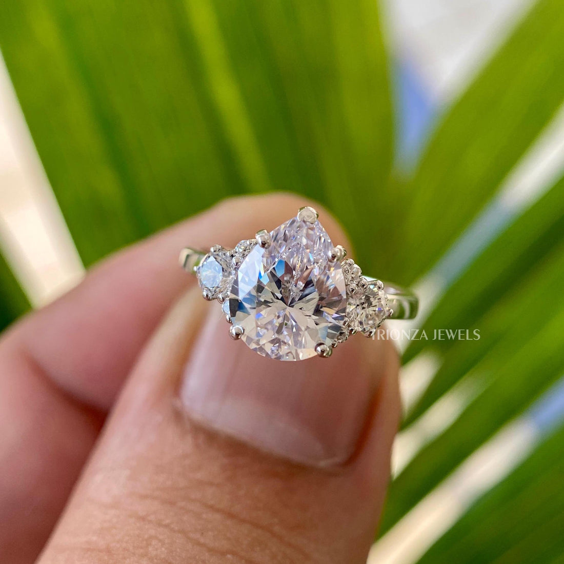2 CT Pear Moissanite Engagement Ring - Sterling Silver Wedding Band