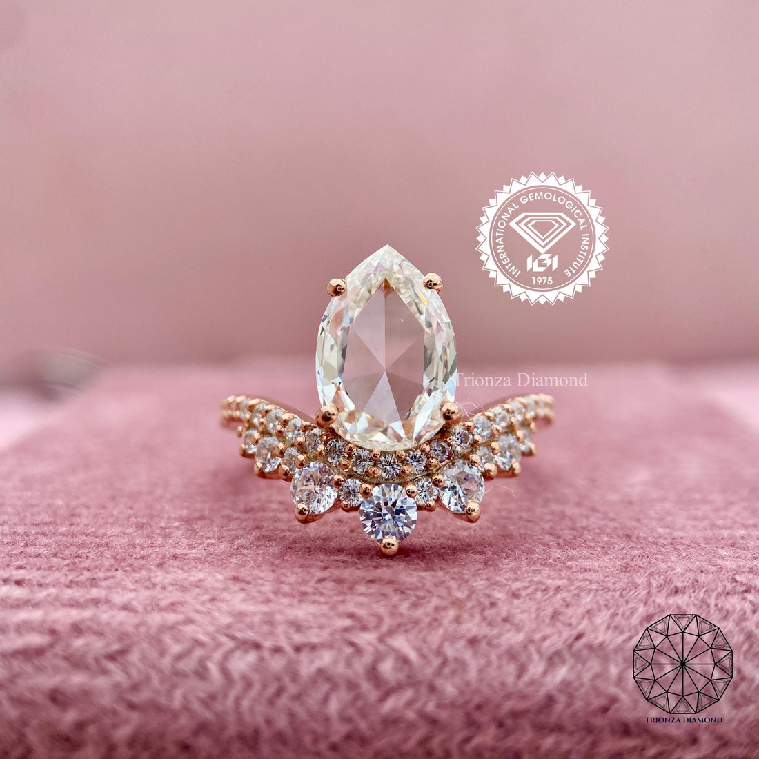 2.60 CT Pear Rose Cut Lab Diamond Engagement Ring - IGI Certified 14K Rose Gold