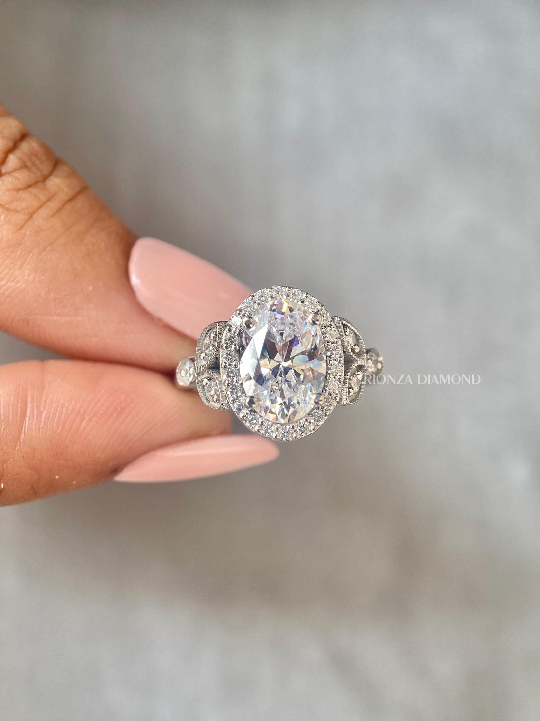 1 CT Oval Art Deco Lab Grown Diamond Engagement Ring E/VVS2
