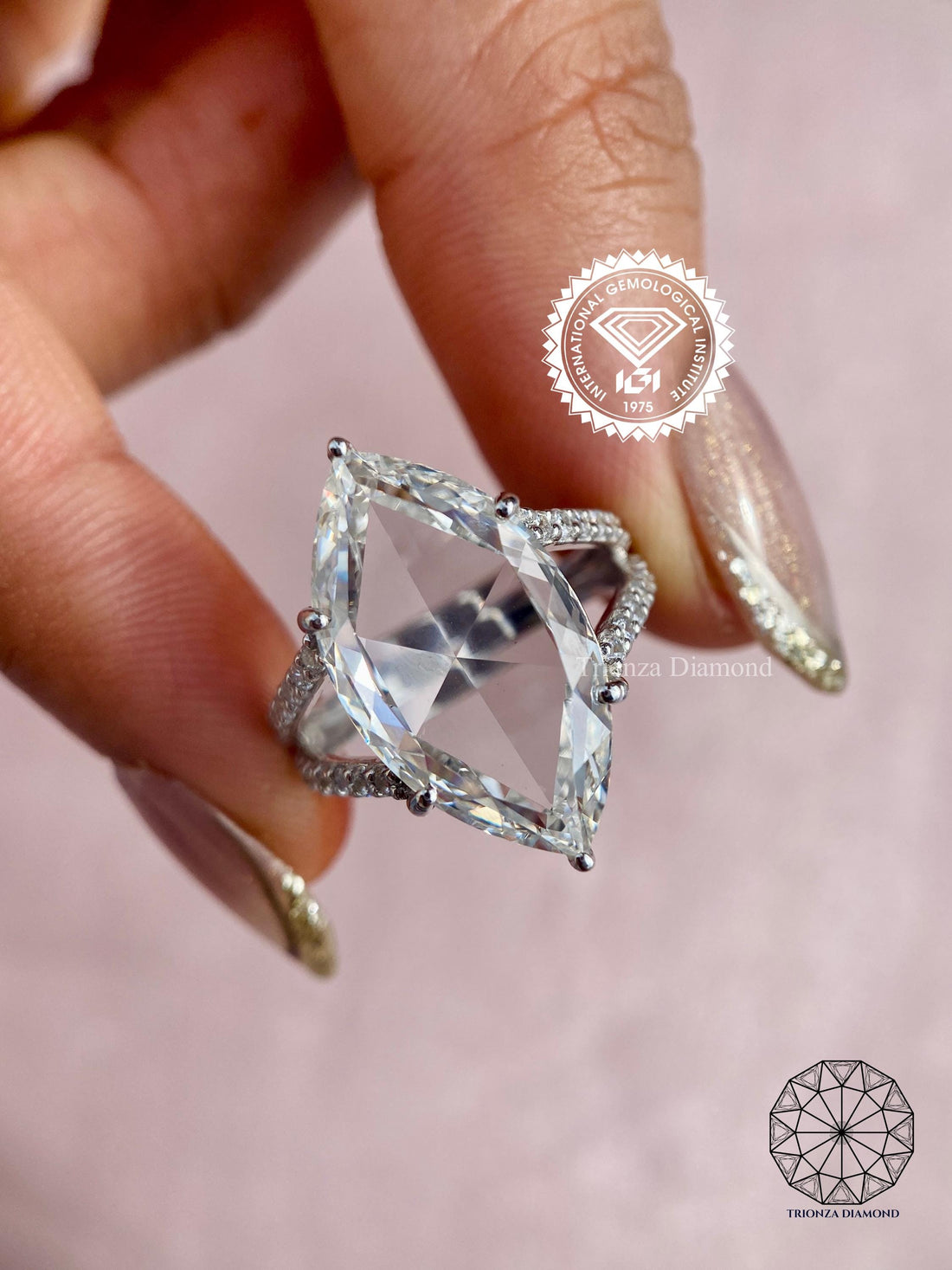 8.04 CT Marquise Rose Cut Lab Diamond Ring IGI Certified