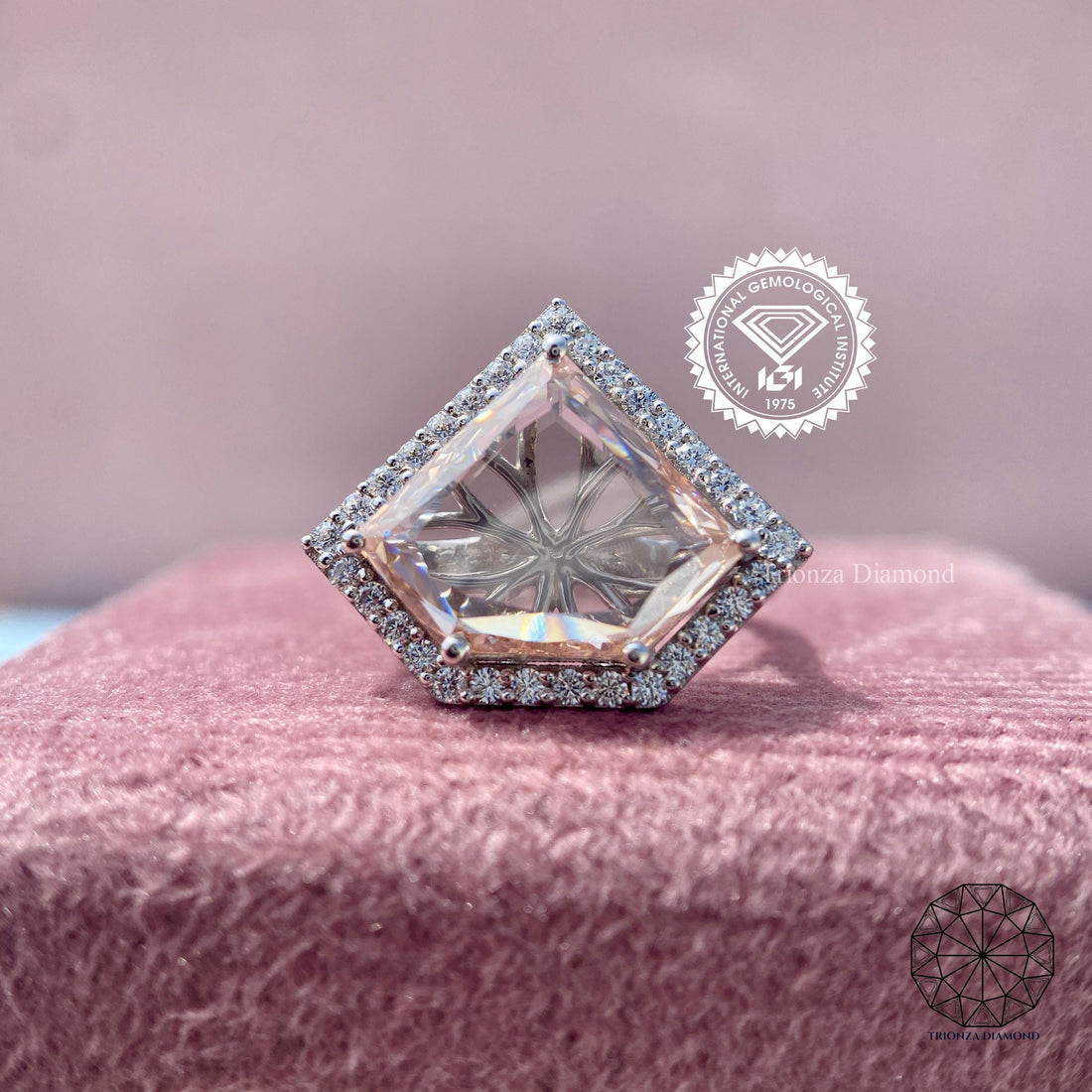 5CT Modified Trillion Rose Cut Lab Grown Diamond Halo Ring IGI Cert