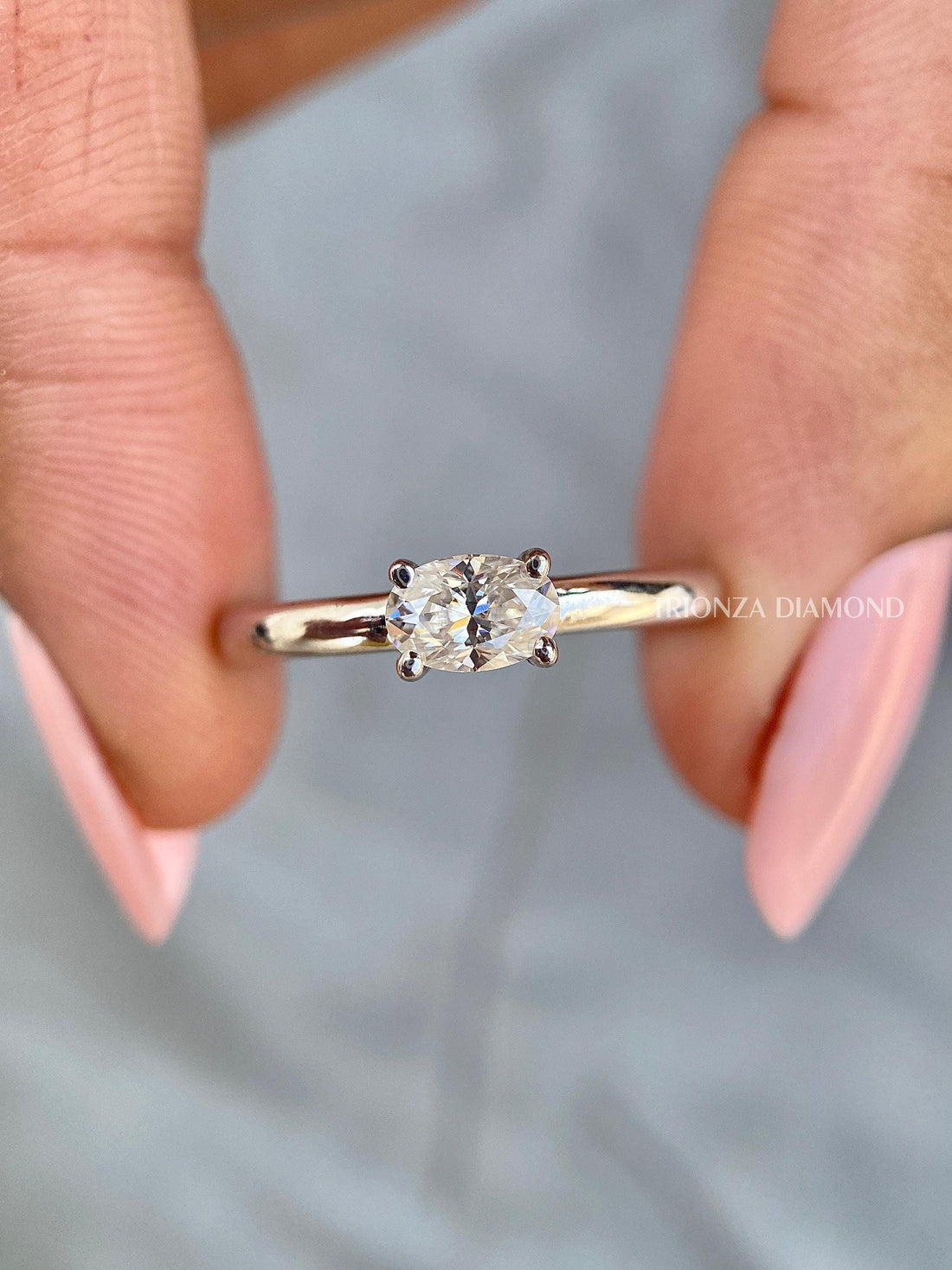 D/VVS2 East West Oval Lab Diamond Solitaire Engagement Ring