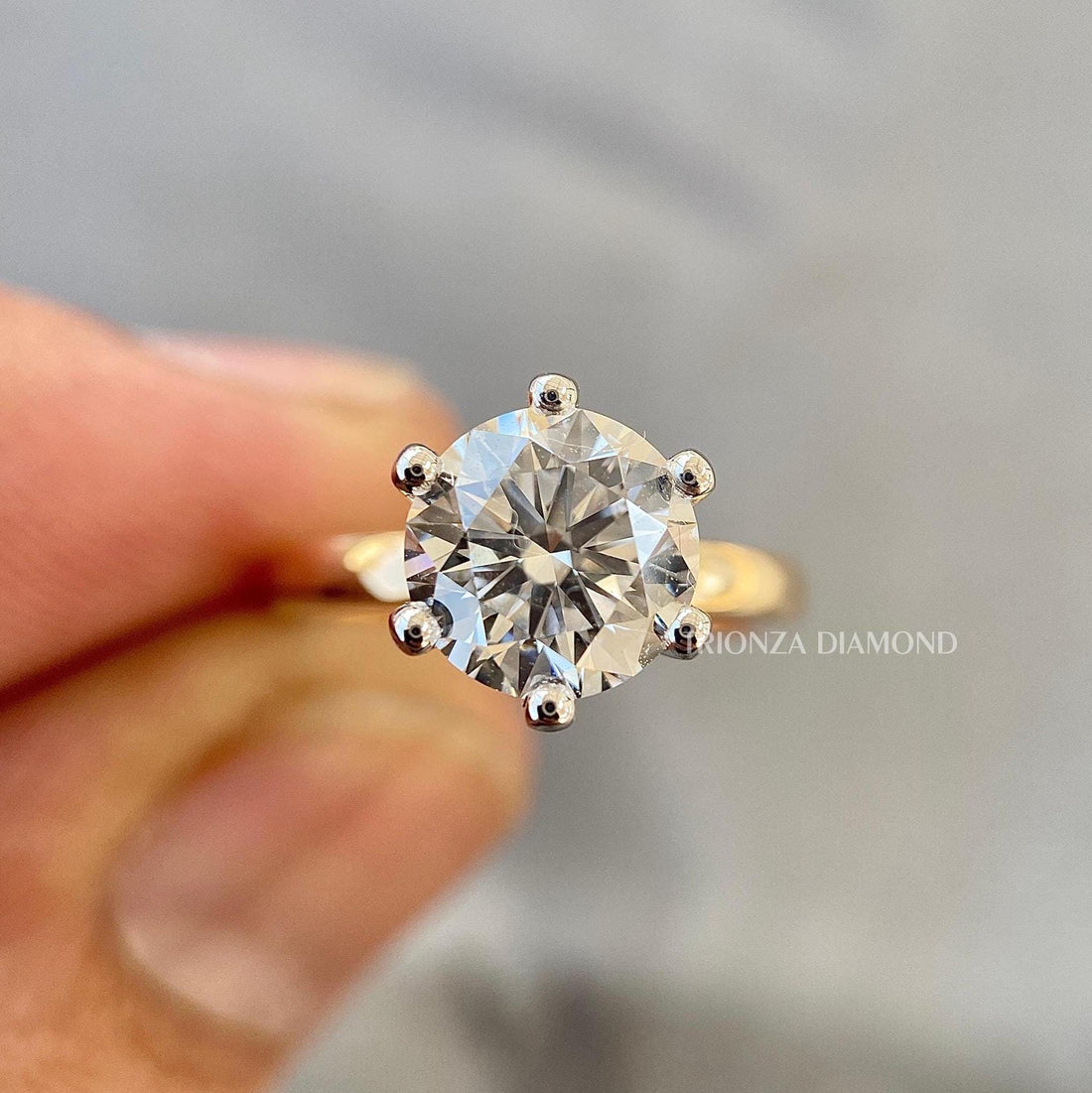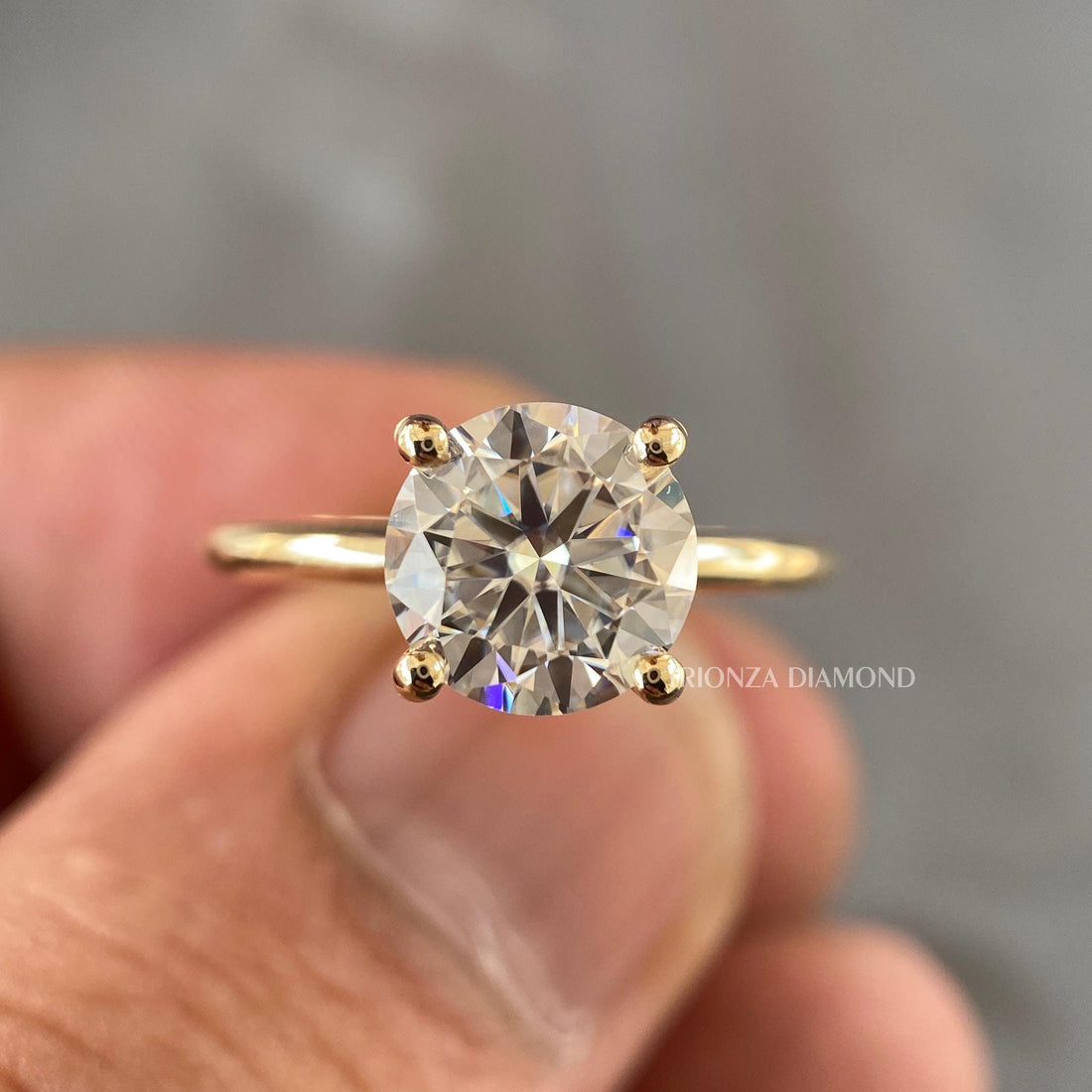 2CT Round Lab Diamond Solitaire Ring | E/VVS2 14K Yellow Gold
