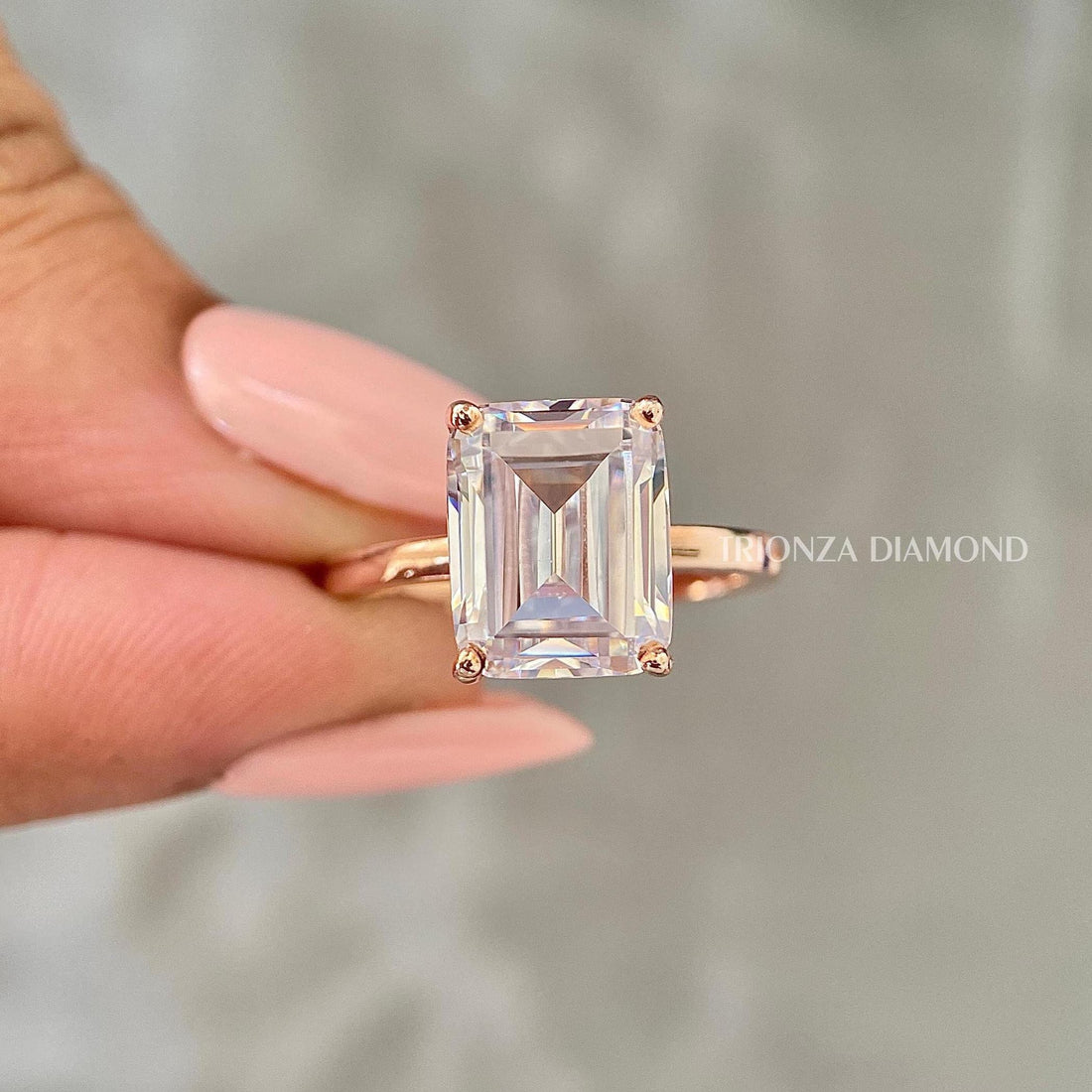 3 CT Emerald Cut Lab Diamond Engagement Ring - Rose Gold F/VVS2