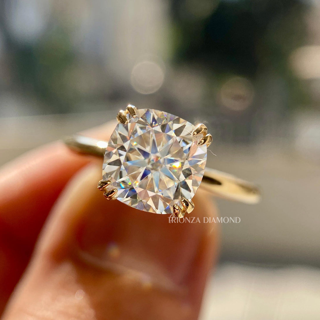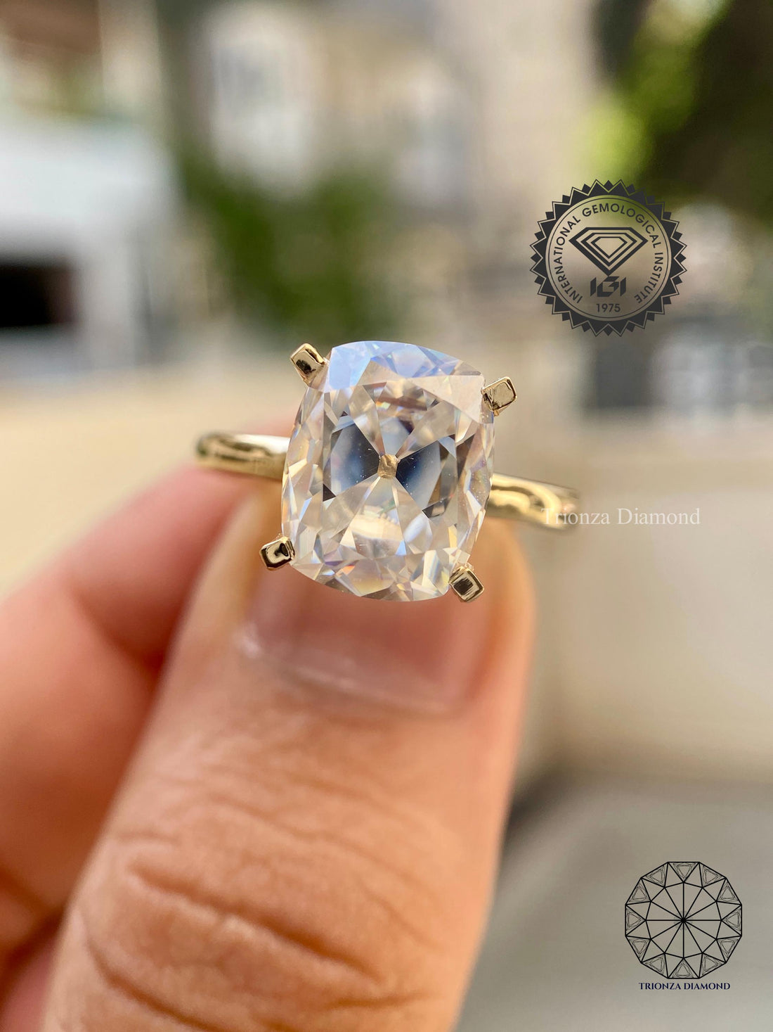3CT Old Mine Cushion Lab Grown Diamond Engagement Ring E VVS2 IGI