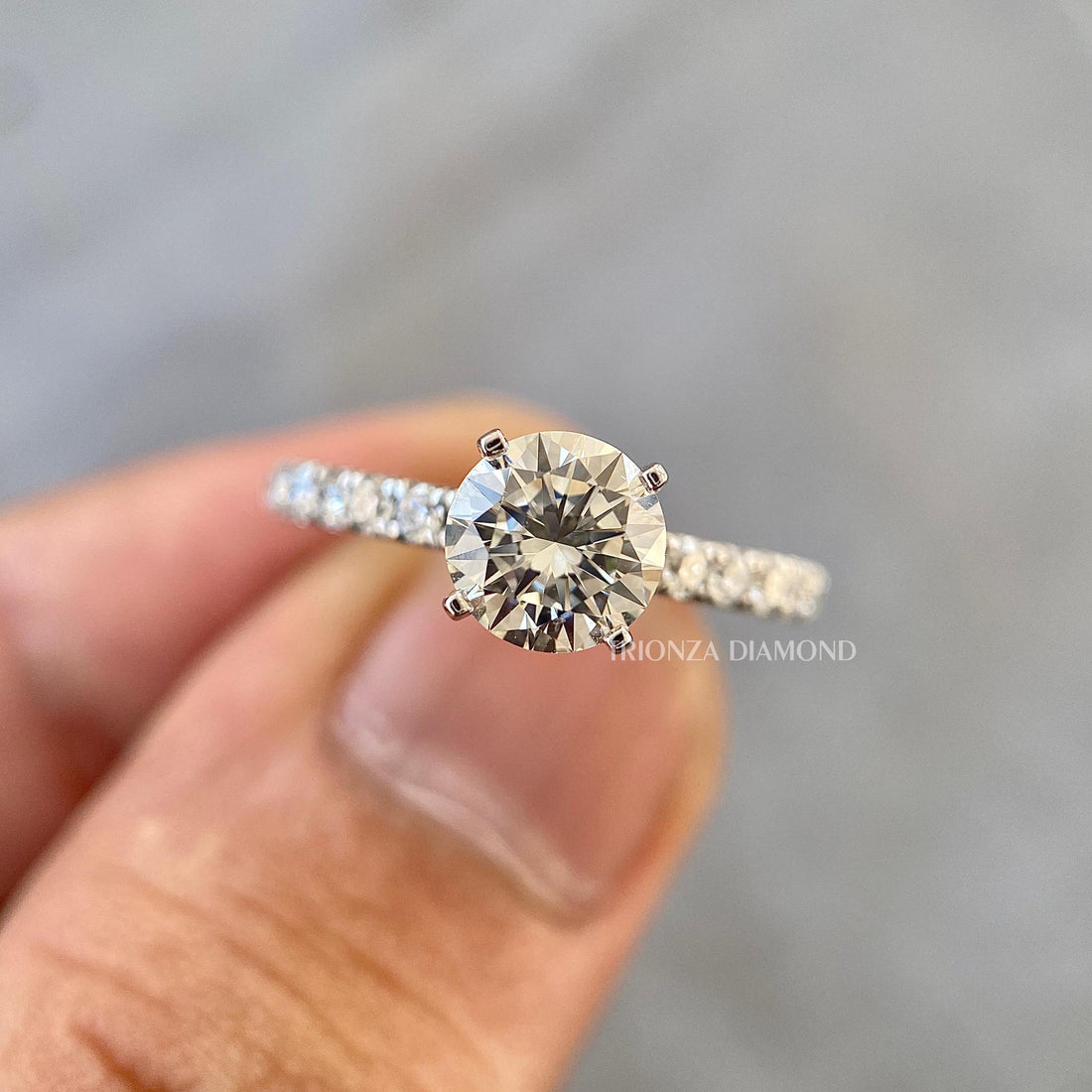 0.75 CT Round Lab Grown Diamond Solitaire Pave Ring - IGI Certified
