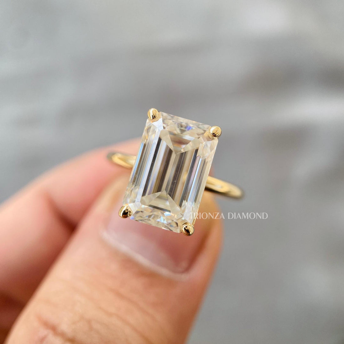 4ct Emerald D VVS2 Lab Diamond Solitaire Ring 14k/18k Gold IGI