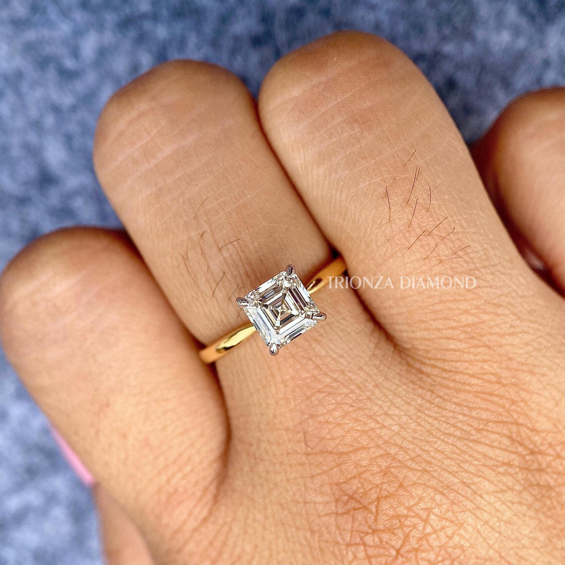 2 CT Asscher Cut Lab Grown Diamond Engagement & Wedding Ring