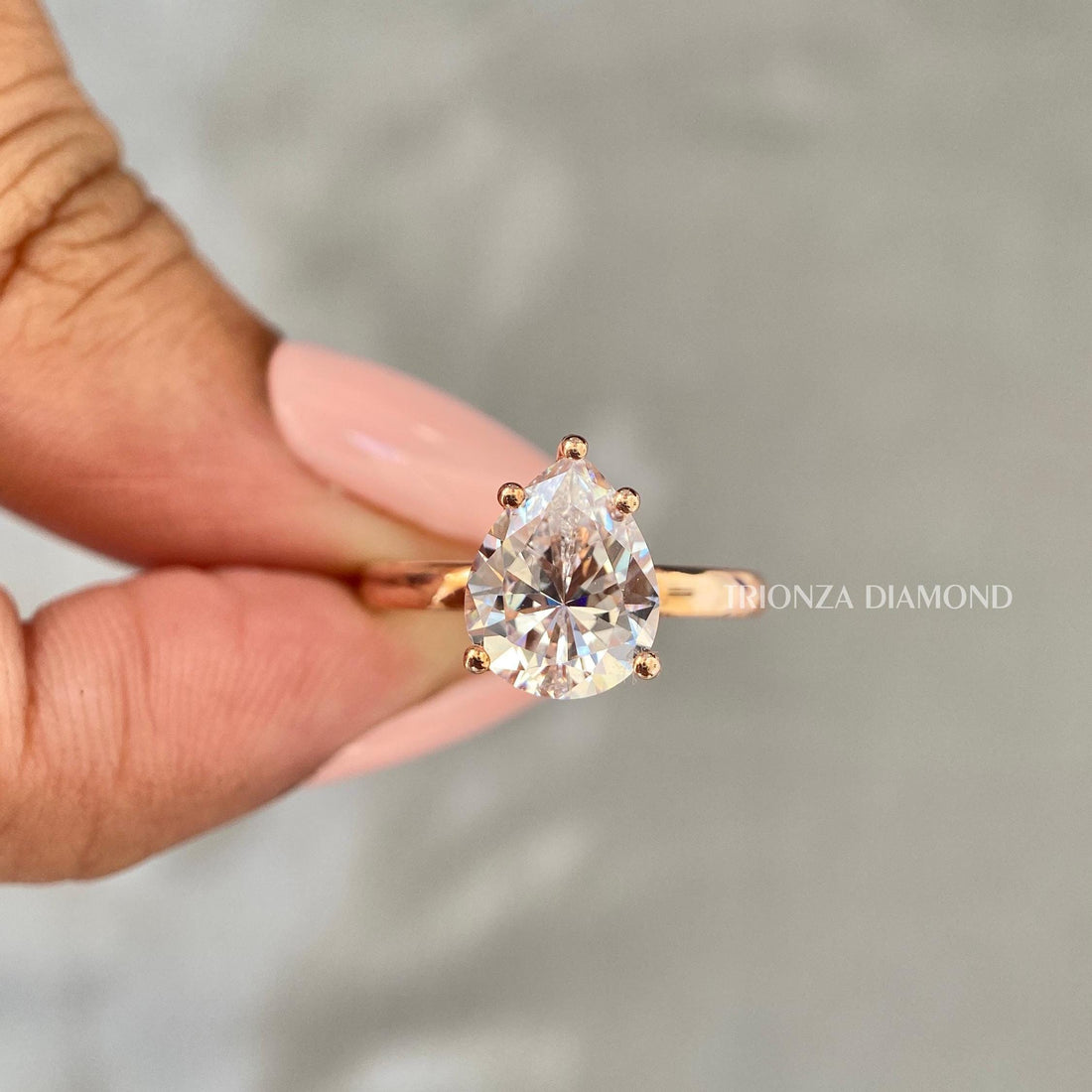 2 CT Pear Lab Grown Diamond Engagement Ring | 14K Rose Gold