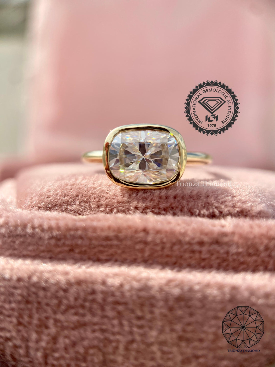 2.50 CT E/VVS2 Lab Grown Cushion East-West Bezel Engagement Ring