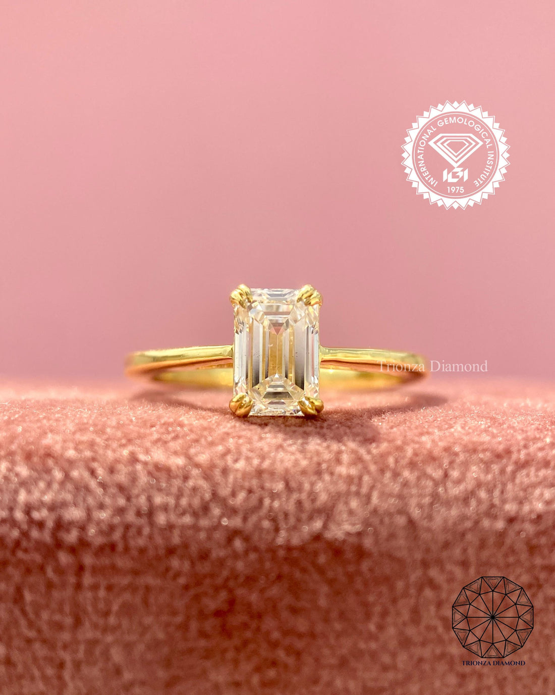 IGI Certified Emerald Cut Lab Grown Diamond Solitaire Ring