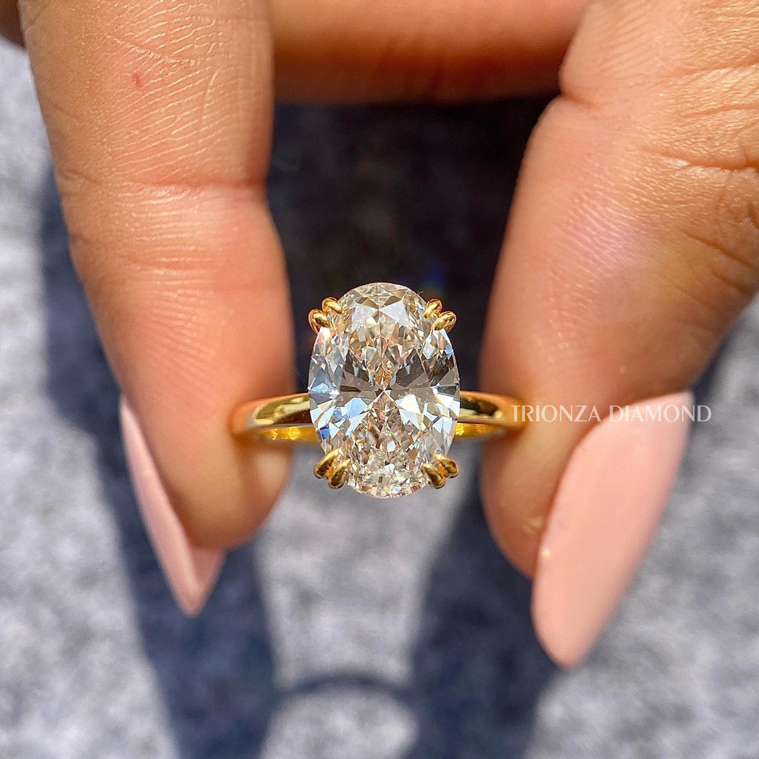 4 CT Oval Lab Grown Diamond F/VVS2 Solitaire Engagement Ring