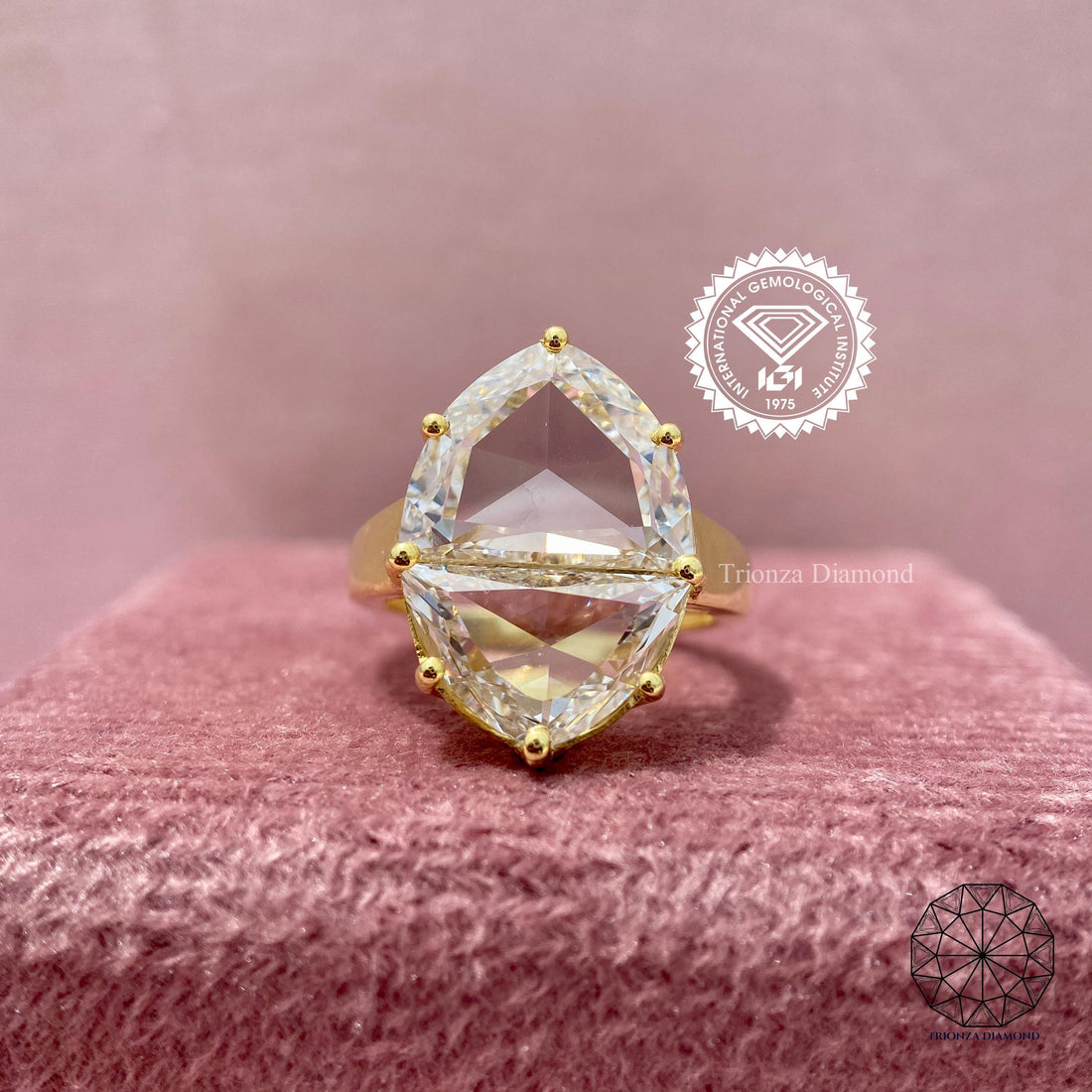 2.93 CT Rose Cut Lab Diamond Engagement Ring - IGI Certified 14K Gold
