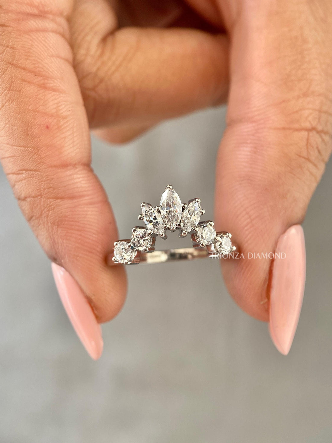Marquise Lab Grown Diamond Curved Wedding & Stackable Band