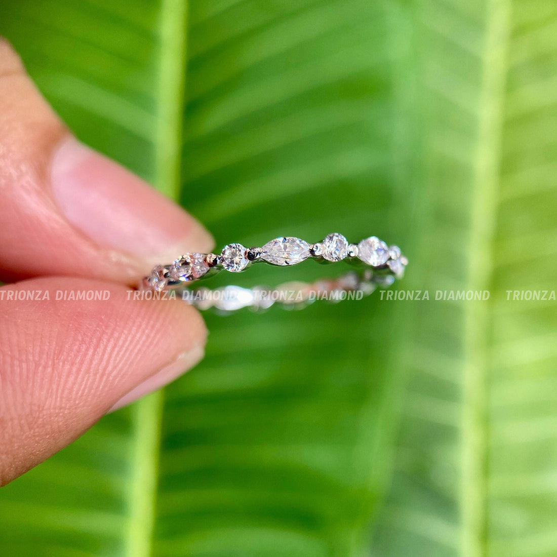 Marquise & Round Lab Grown Diamond Stackable Wedding Band