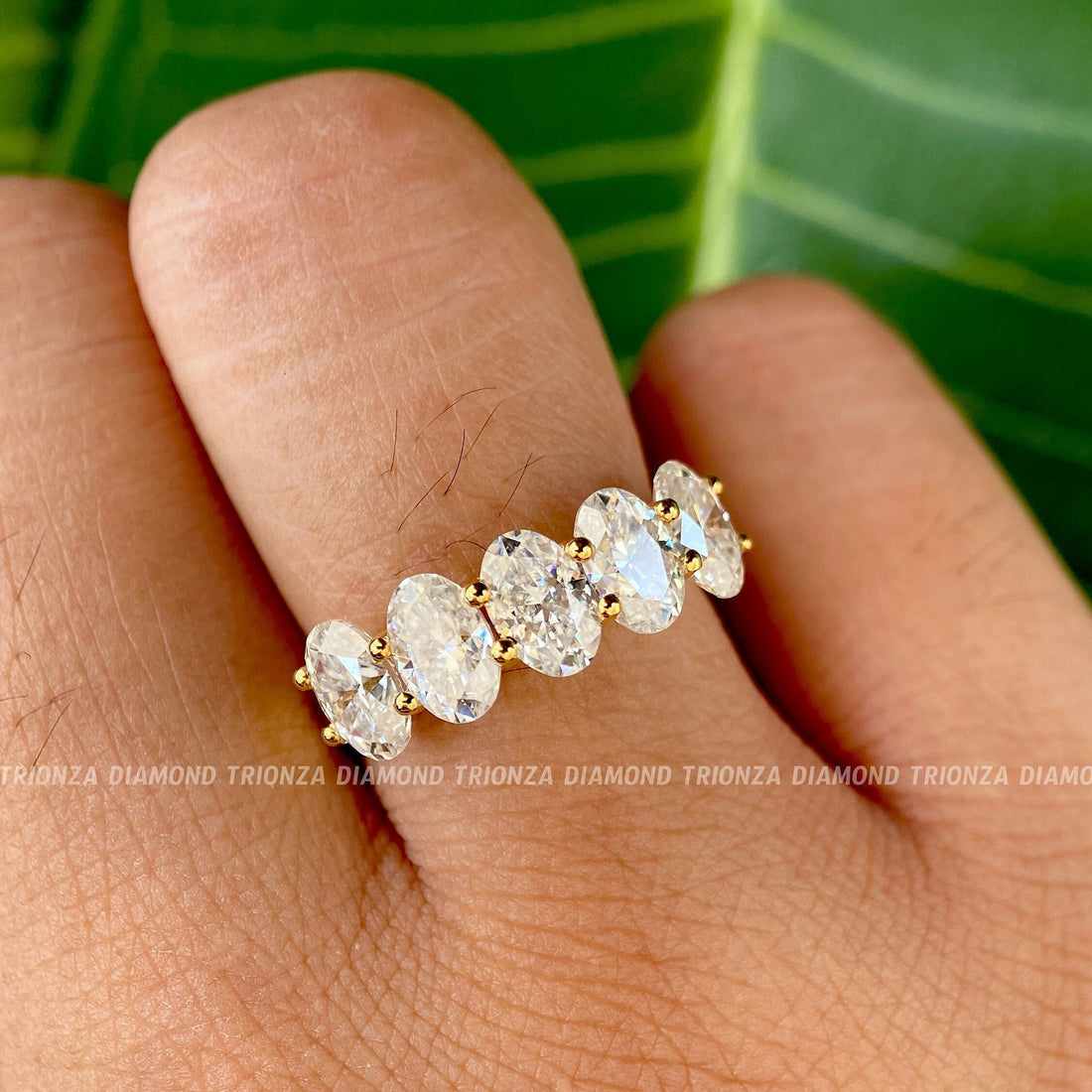 Oval Lab Diamond 5/7/9 Stone Ring - Gold Engagement & Anniversary Band