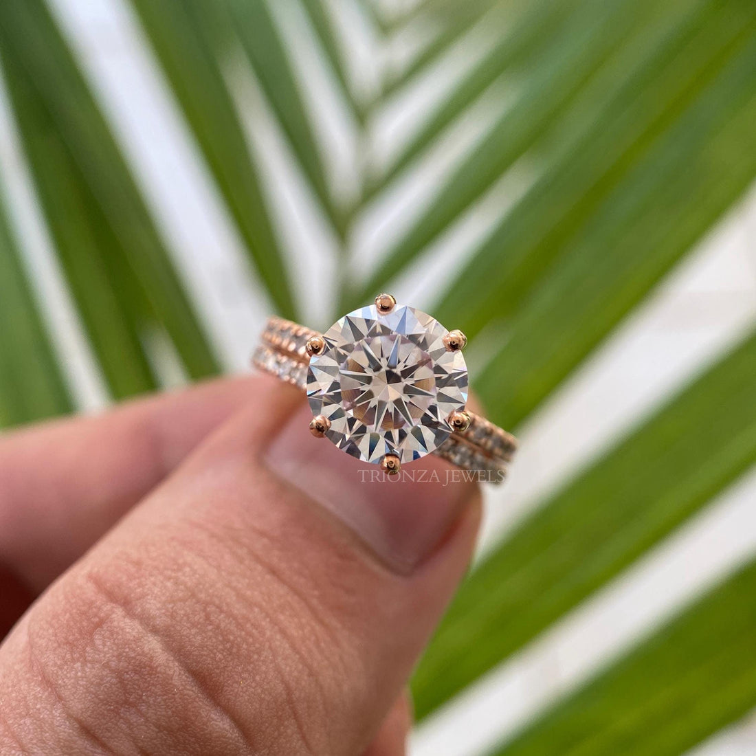 2CT Round Moissanite Bridal Set | 14K Rose Gold Wedding Ring