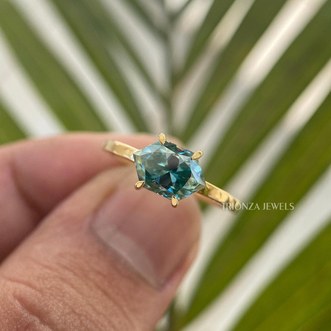 0.80 CT Green Moissanite Engagement Ring - Hexagonal Solitaire