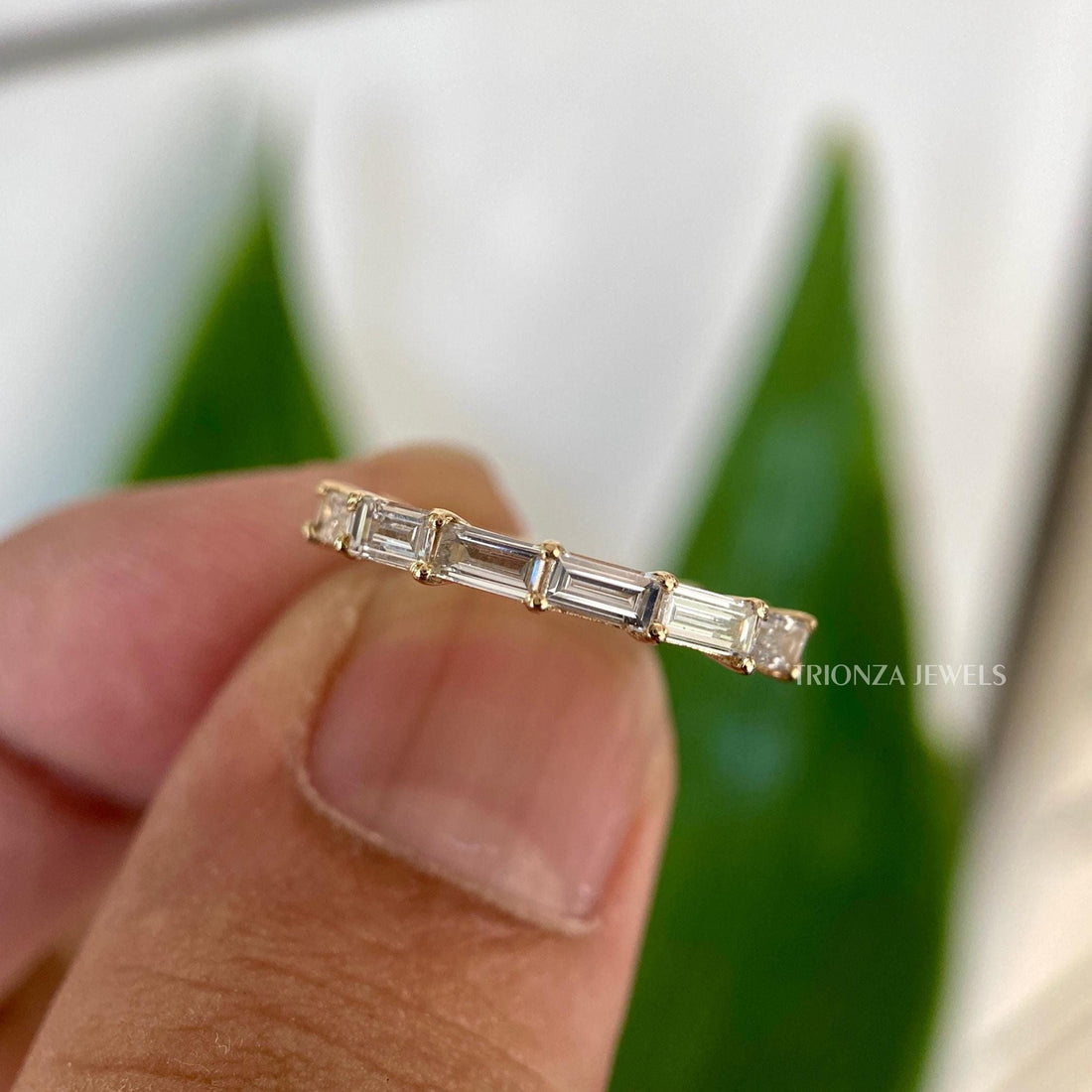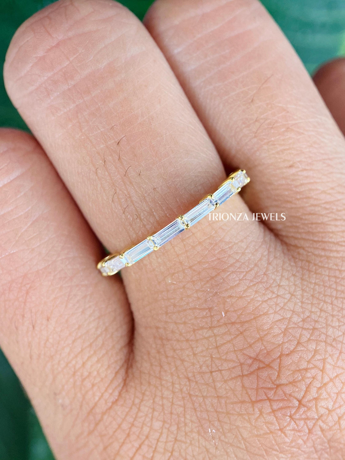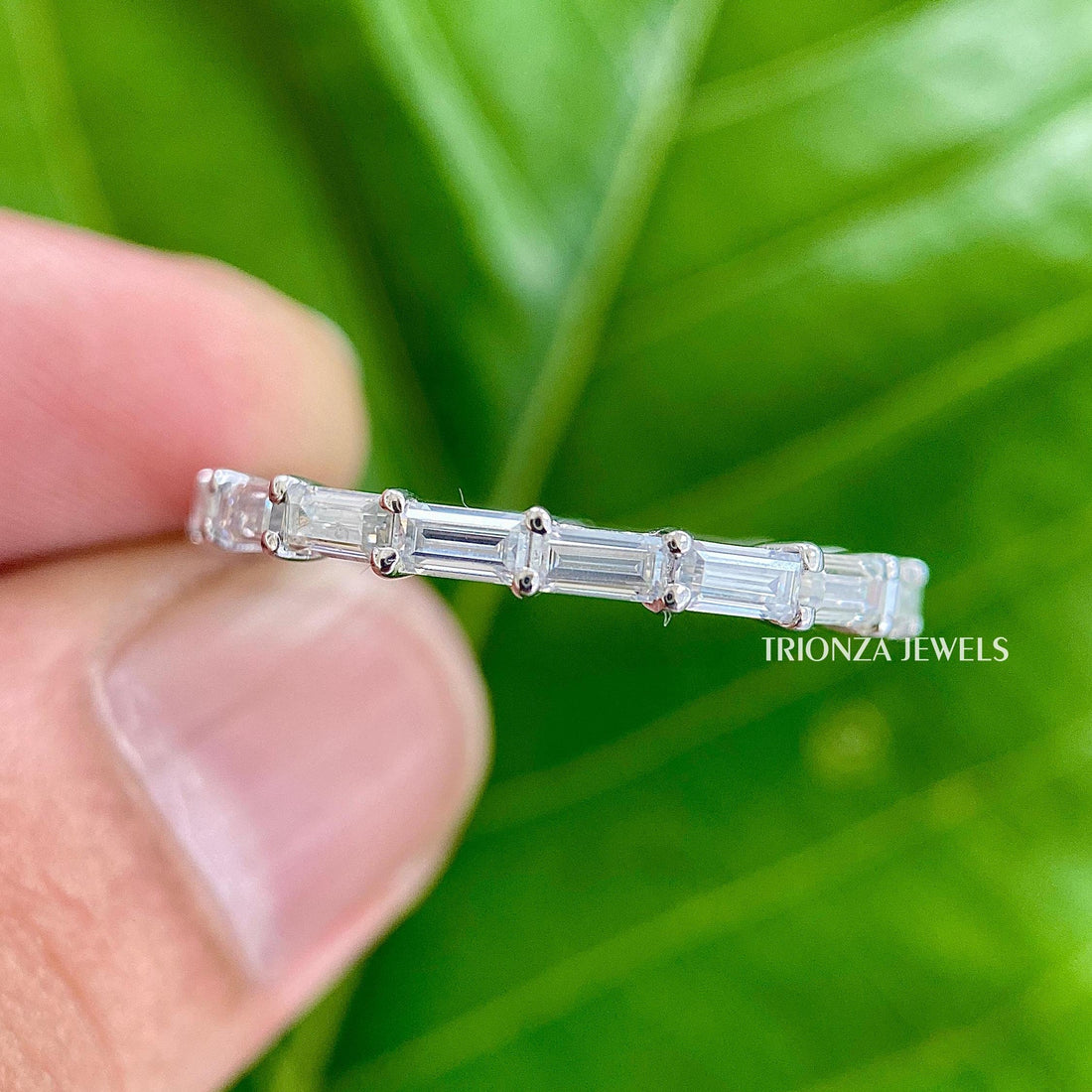 Baguette Cut Moissanite Eternity Band Ring - Stackable Wedding