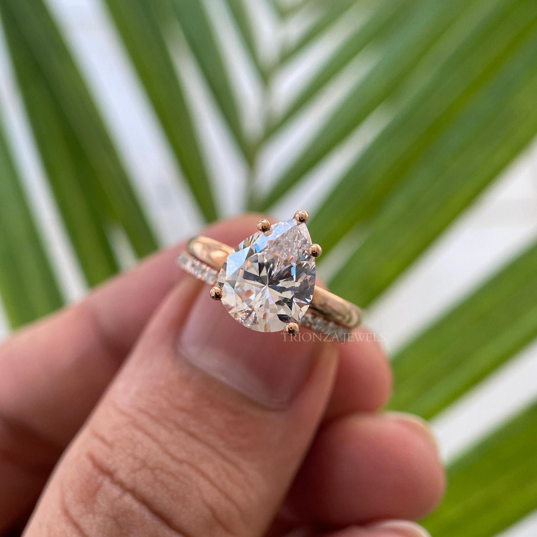 Pear Cut Moissanite Bridal Set - 2ct Rose Gold Wedding Ring