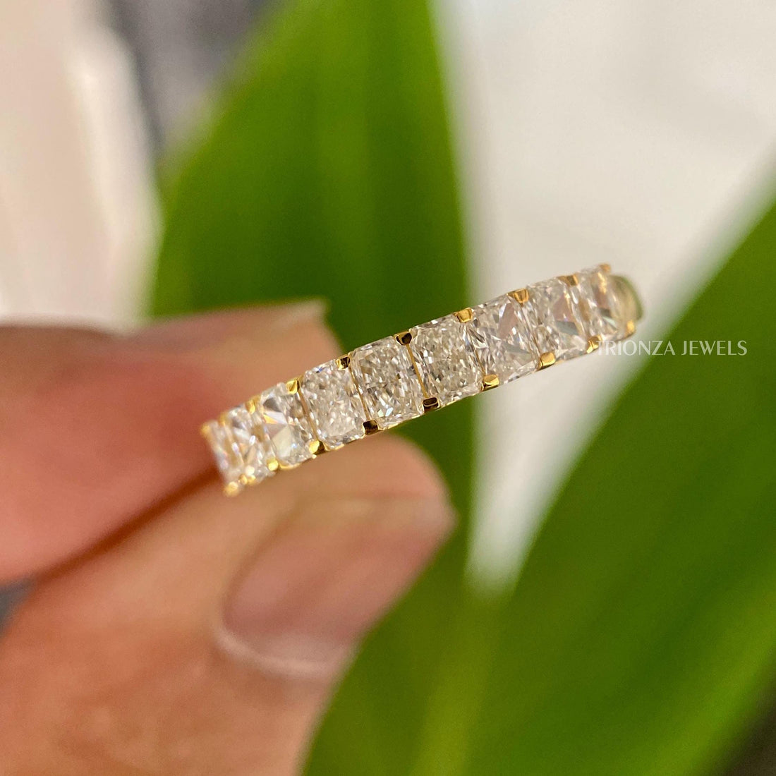 Radiant Moissanite Eternity Band | 18K Yellow Gold Stackable Ring