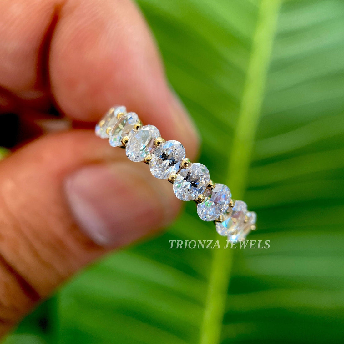 Oval Moissanite Half Eternity Band - 10K/14K/18K Gold Wedding Ring