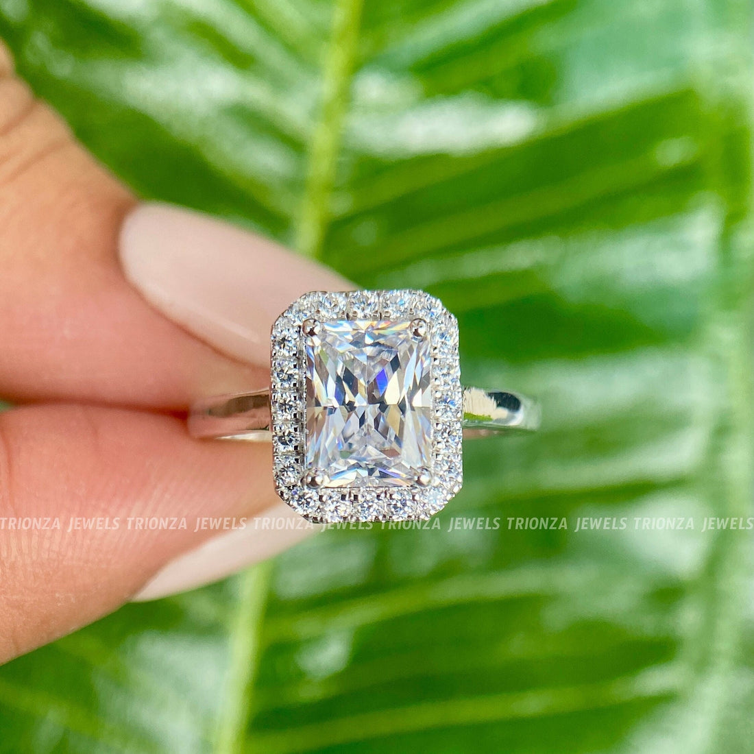 2 CT Radiant Cut Moissanite Halo Engagement Wedding Ring