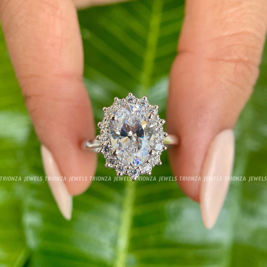 3.00 CT Oval Moissanite Halo Engagement Wedding Ring for Women