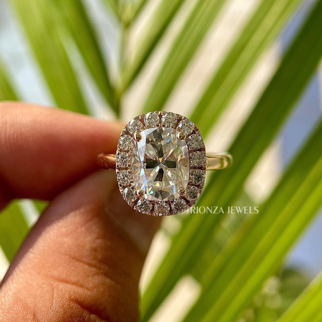 3 CT Oval Halo Moissanite Wedding Ring for Women | Handmade Gift