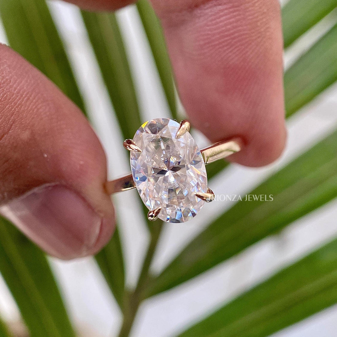 4 CT Oval Moissanite Engagement Ring | Hidden Halo 14K Gold
