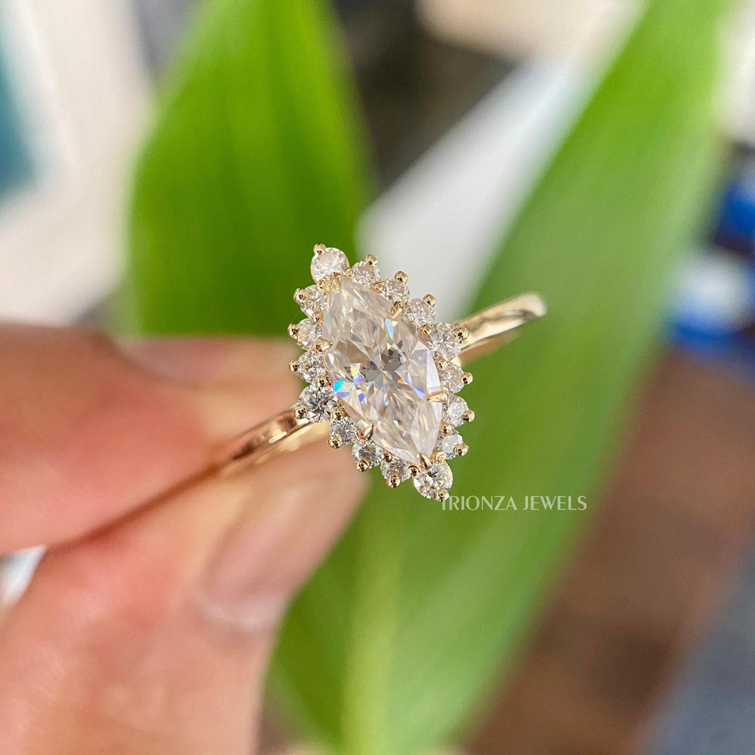 2.0 CT Marquise Halo Moissanite Engagement Ring | 14K Gold Wedding Ring