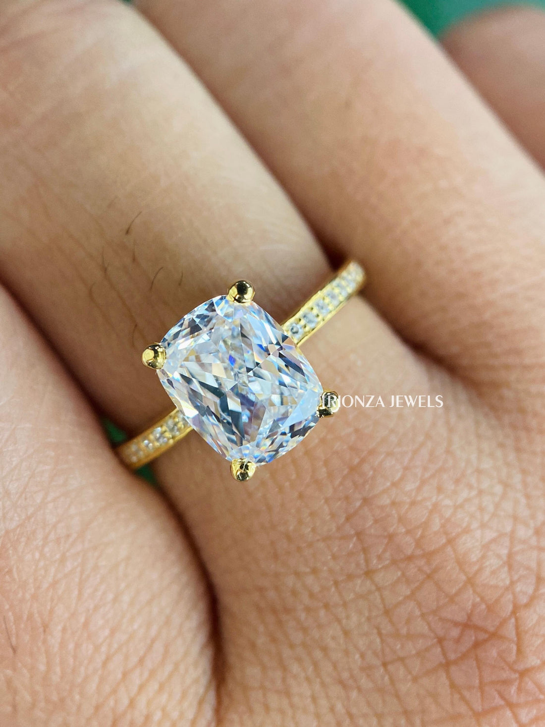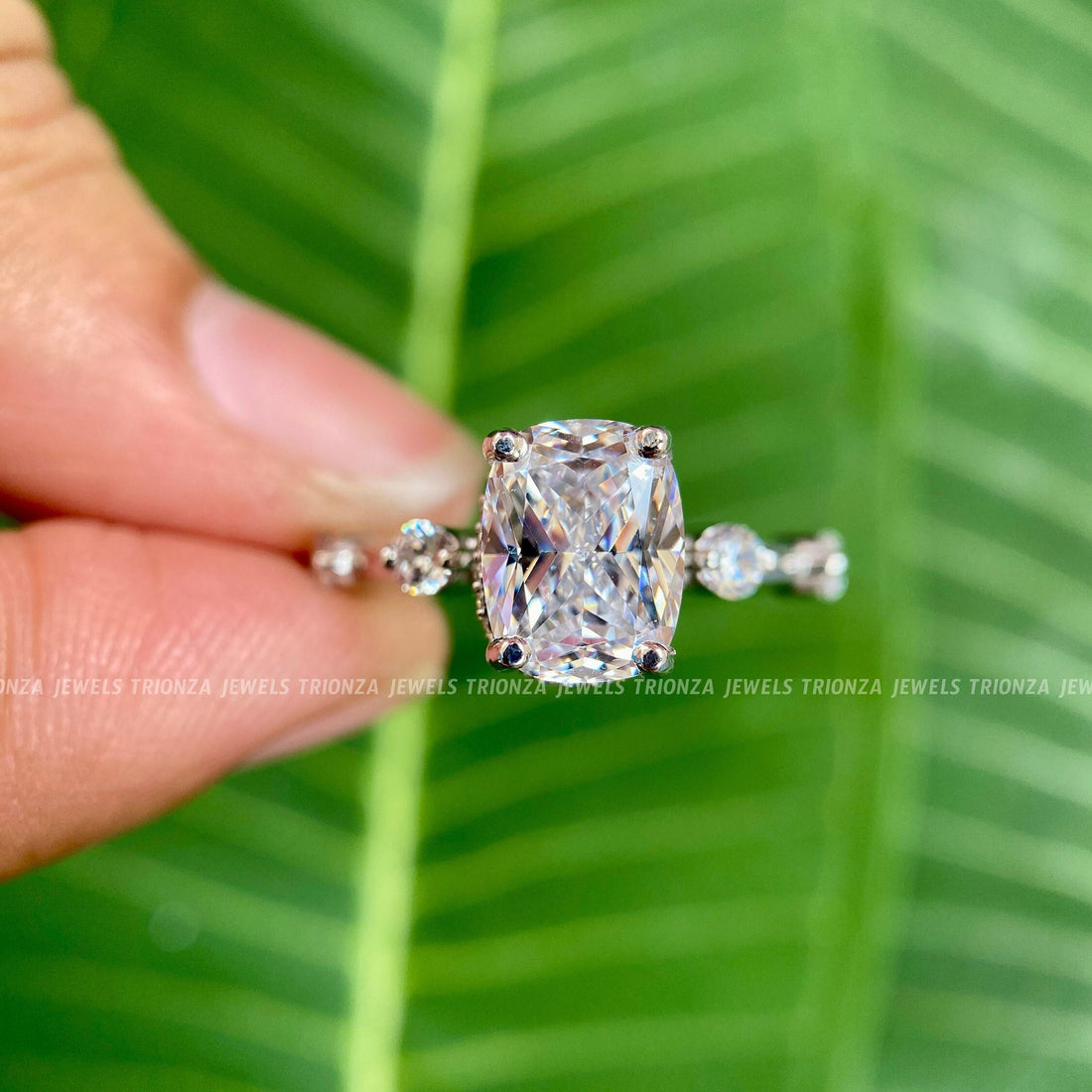 Celebrate your love with this exquisite 2.0 CT Cushion Cut Moissanite Engagement Ring from TRIONZA...