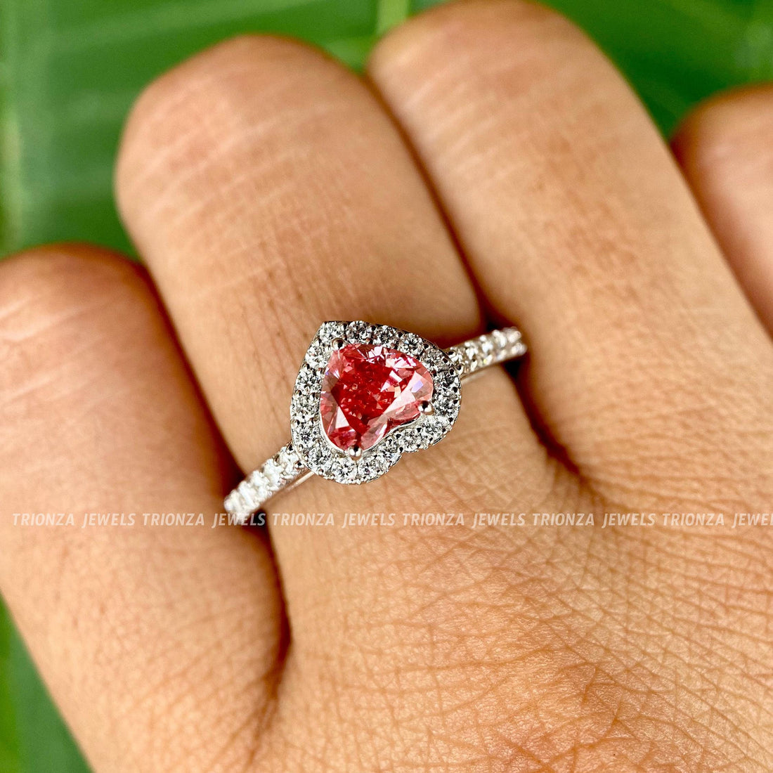 Red Heart Halo Moissanite Engagement Ring | 14K Gold Wedding Ring