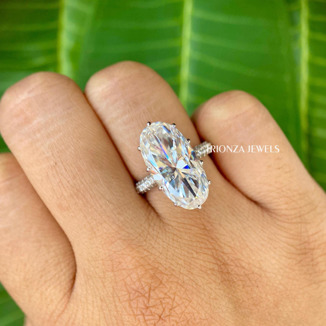 Celebrate your love with this stunning 6.00 CT Elongated Oval Moissanite Solitaire Engagement Ring. Handcrafted...