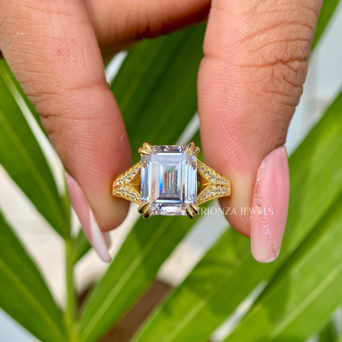 3 Ct Emerald Cut Moissanite Ring - 14K Gold Engagement for Women