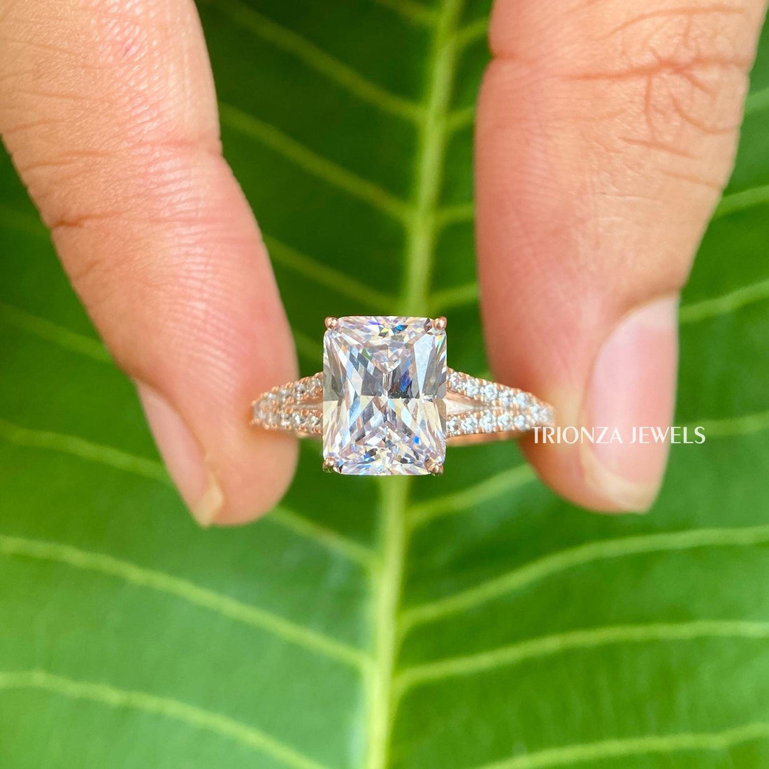 2.50 CT Radiant Moissanite Engagement Ring 14K Gold Pave Band