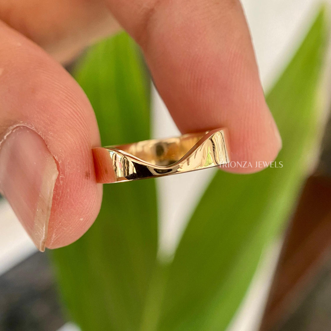 14k Gold Wishbone Chevron Stacking Ring - Curved Wedding Band