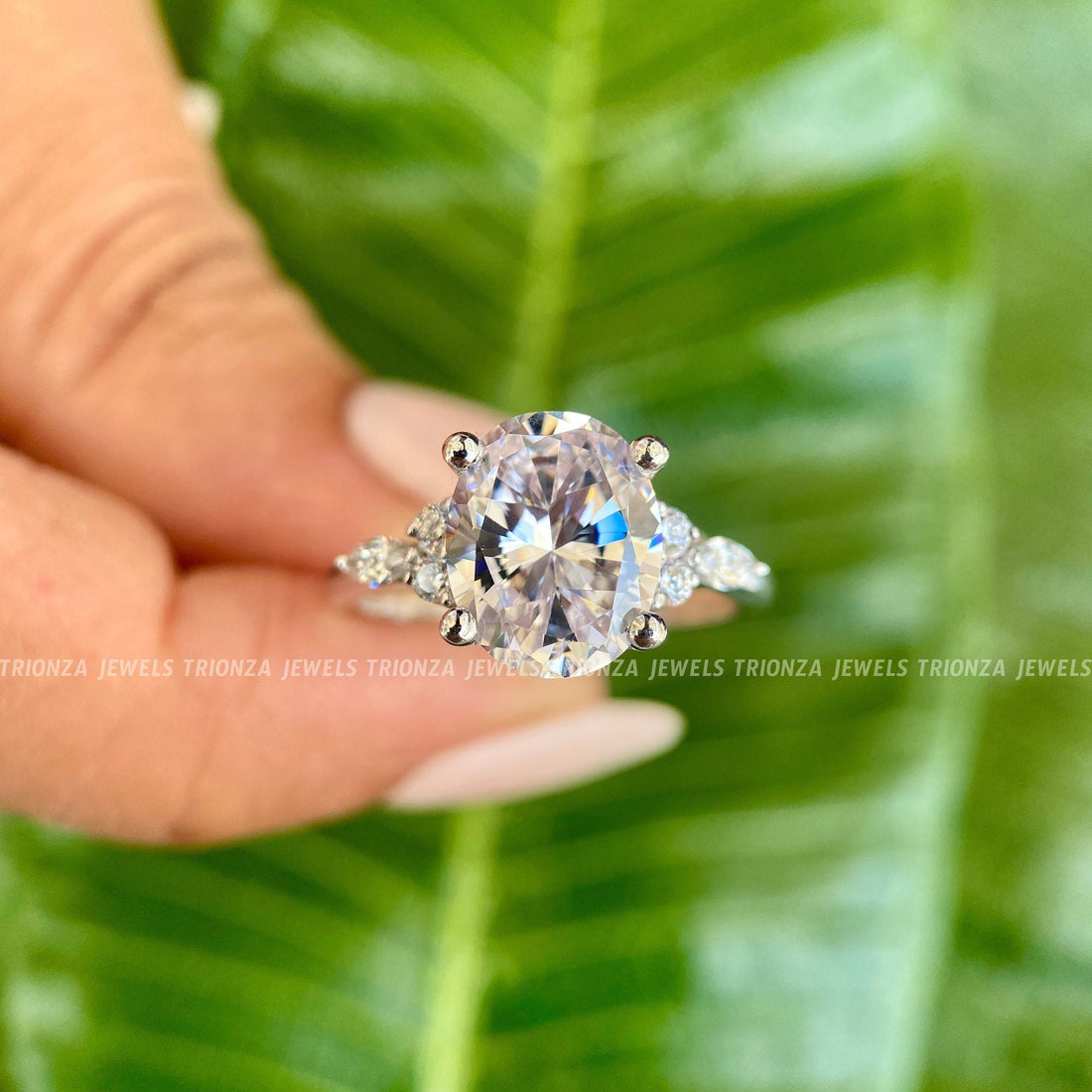 Elevate her style with this stunning 3 CT Oval Moissanite Engagement Ring, crafted in exquisite...