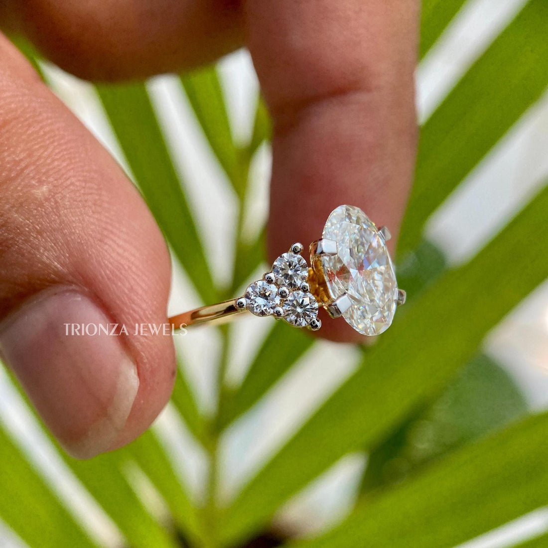 2.00 CT Oval Moissanite Engagement Ring | 14K Gold & Marquise Sides