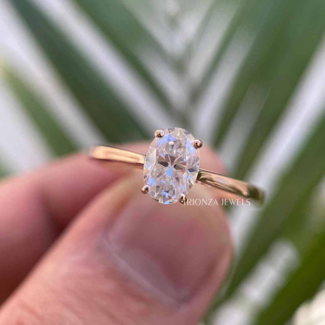 2.00 CT Oval Moissanite Engagement Ring | 14K Rose Gold Solitaire