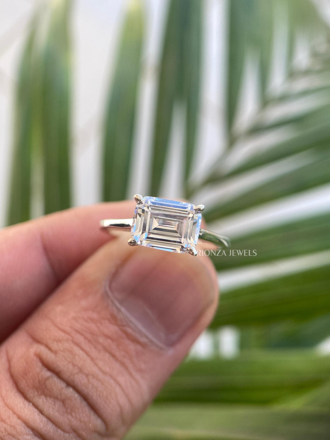 2 CT Emerald Cut East West Moissanite Engagement Wedding Ring