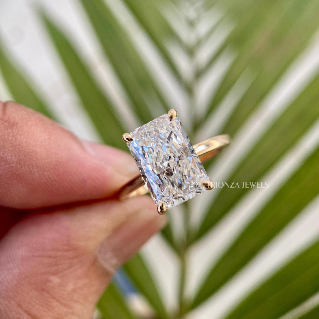 5 CT Radiant Moissanite Engagement Ring - Dainty Gold Hidden Halo